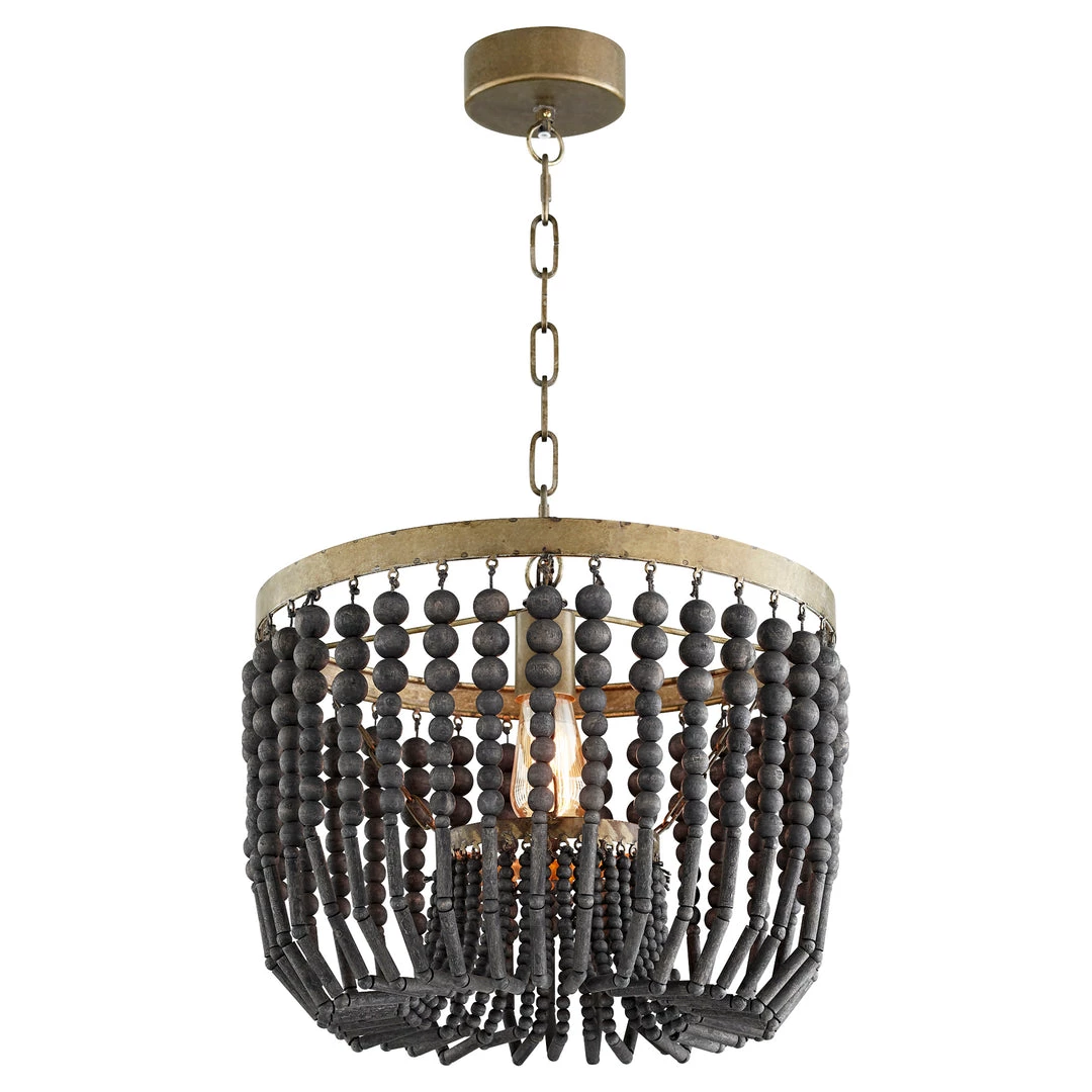 The Hammock Pendant features a circular tinted raw iron frame with blackened wood beads which elegantly fold back into its epicenter. This quaint pendant light is perfect for kitchen islands and smaller spaces.