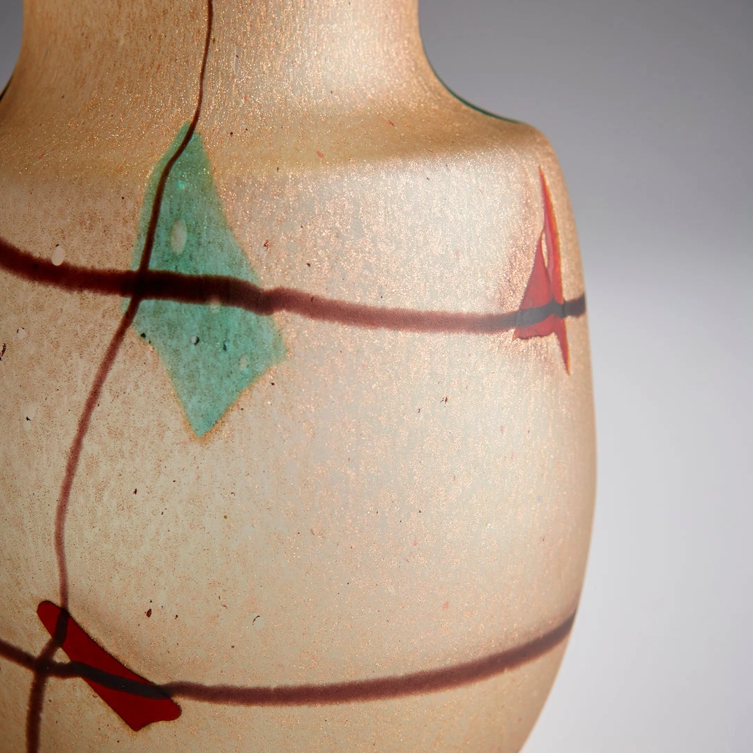 With a classic bud-shaped silhouette, this table vessel brings a touch of artisanal vibrance to any arrangement in your space. A multi-colored surface mixes red and green accents with a dark cross-hatched grid on an amber palette. The vase is covered in a textured glaze, making it perfect for any modern, eclectic, or transitional design. The artistic appeal is evident in this glass accent. The colorful notes make it the ideal accessory to store your floral arrangements, branches, or to display on its own. Update your kitchen countertop, or add some lively-contemporary style to your entryway console table with the Cuzco vase.