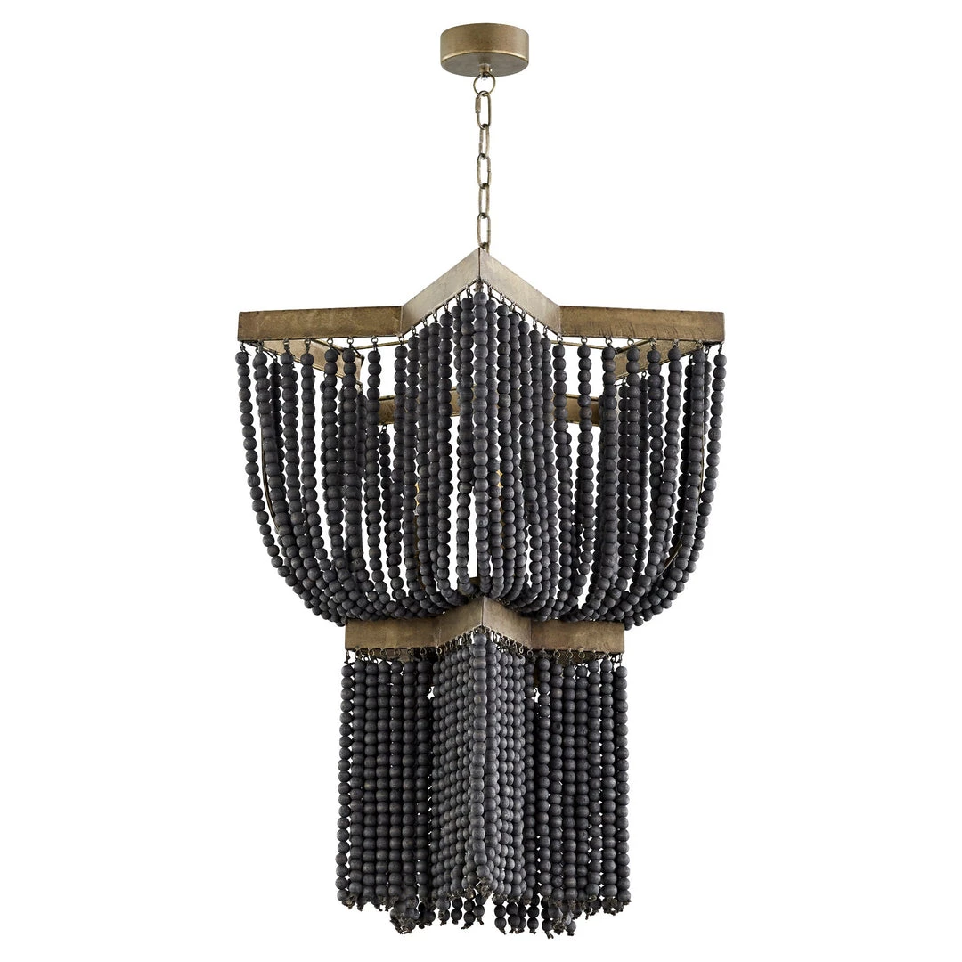 Vintage charm makes its way to a tasteful and stylish bohemian light fixture. With a design-forward silhouette, strands of wood beads in a charcoal finish add a fun detail enhancement to a beautifully designed base. This three-light tinted raw iron and wood pendant delivers an extra special artistic feel.