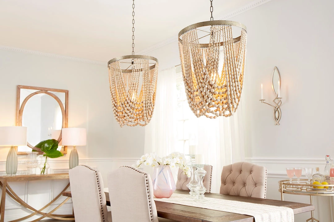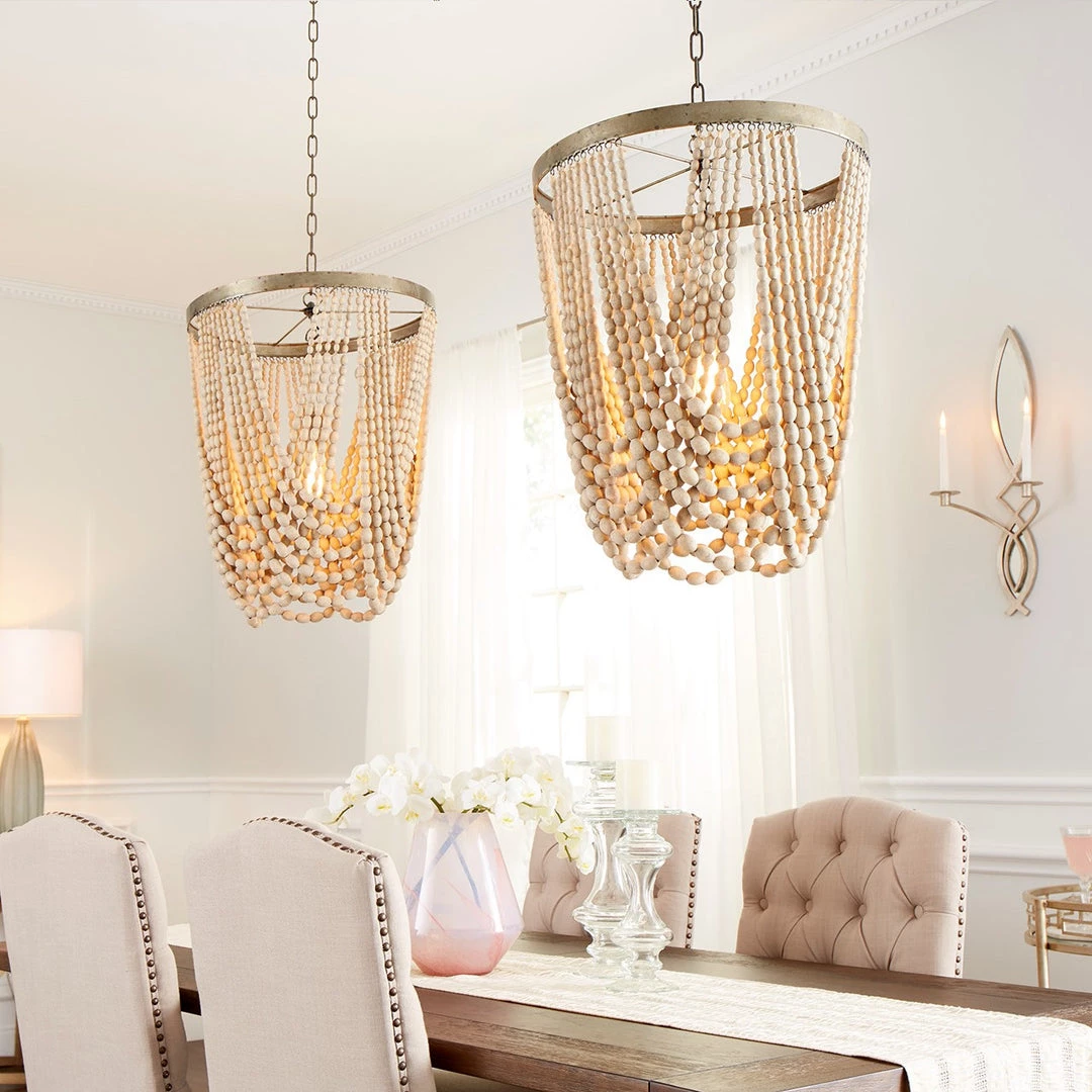 With a hint of Bohemian style, its wrapped strands of creamy wood beads bring a natural look and feel, while a ring base of tinted raw metal preserves its earthy attitude.