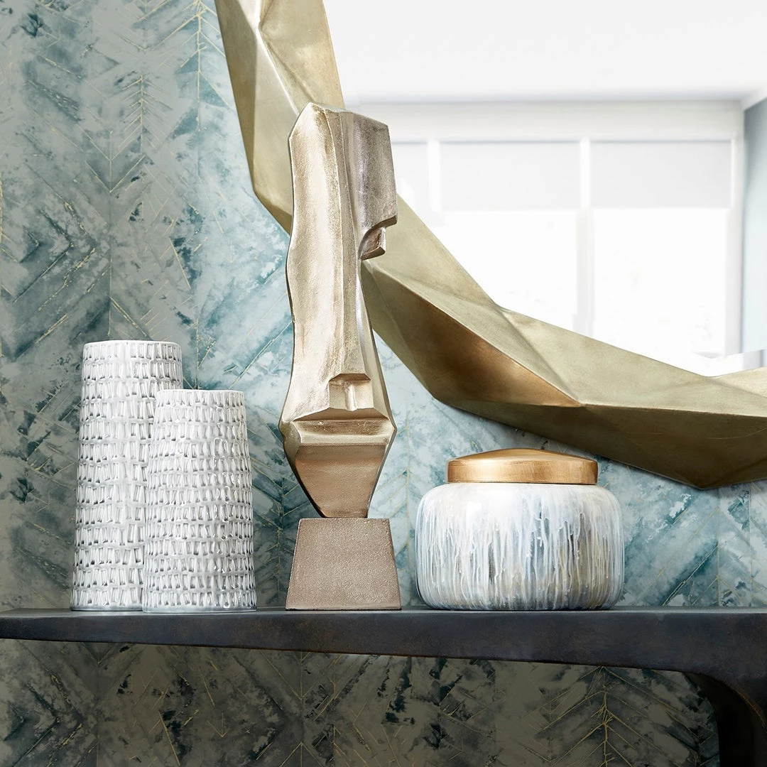 Great for any console or mantel, this nickel tribal-inspired sculpture enhances modern eclectic décor.