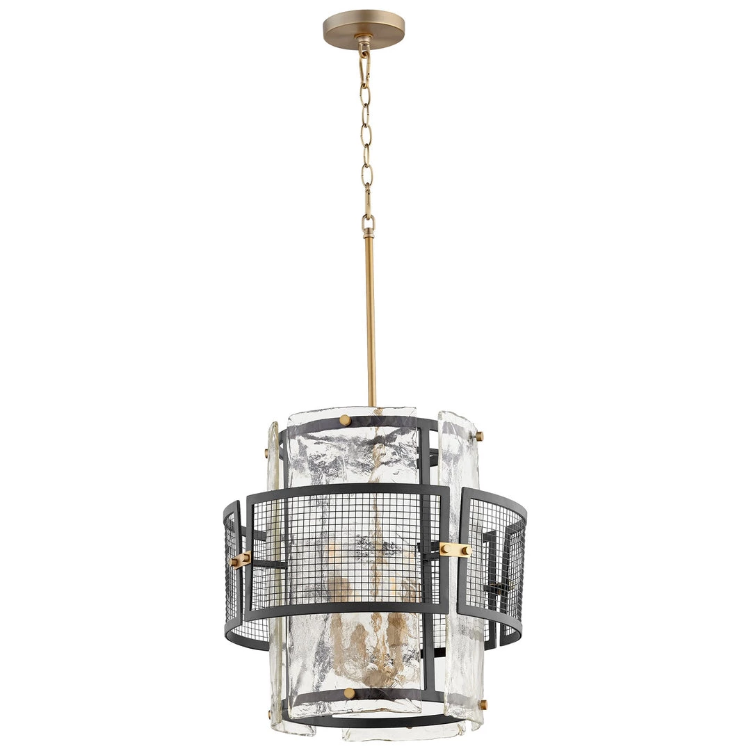 This luminary brings a luxuriously industrial element with a black noir finish with aged brass accents and interior frosted glass panel diffusers. Perfect for any residential or commercial design project.