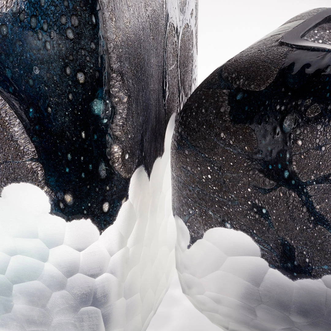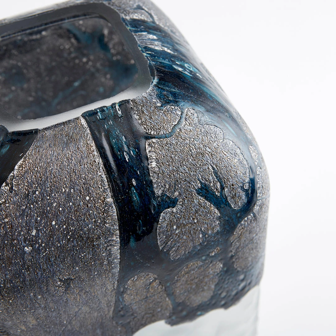 The artistic appeal is evident in this glass accent. A modern take on a box-shaped silhouette, this table vase brings a touch of artisanal charm a two-toned surface, sporting midnight blue and translucent gradient finished with etched textured carvings.