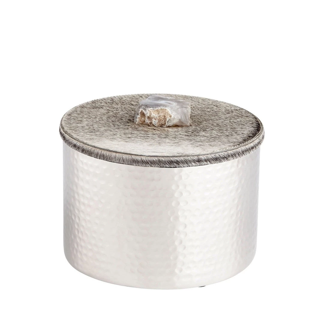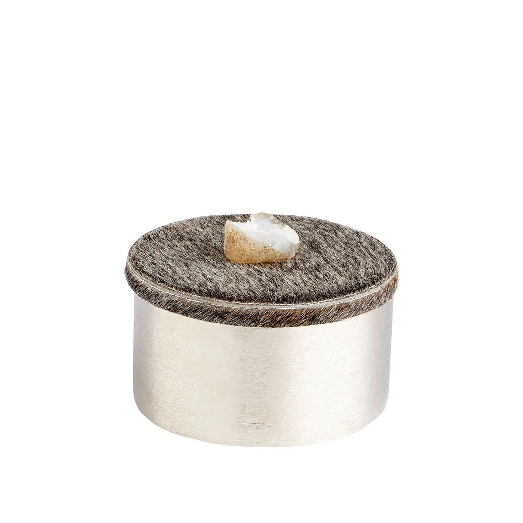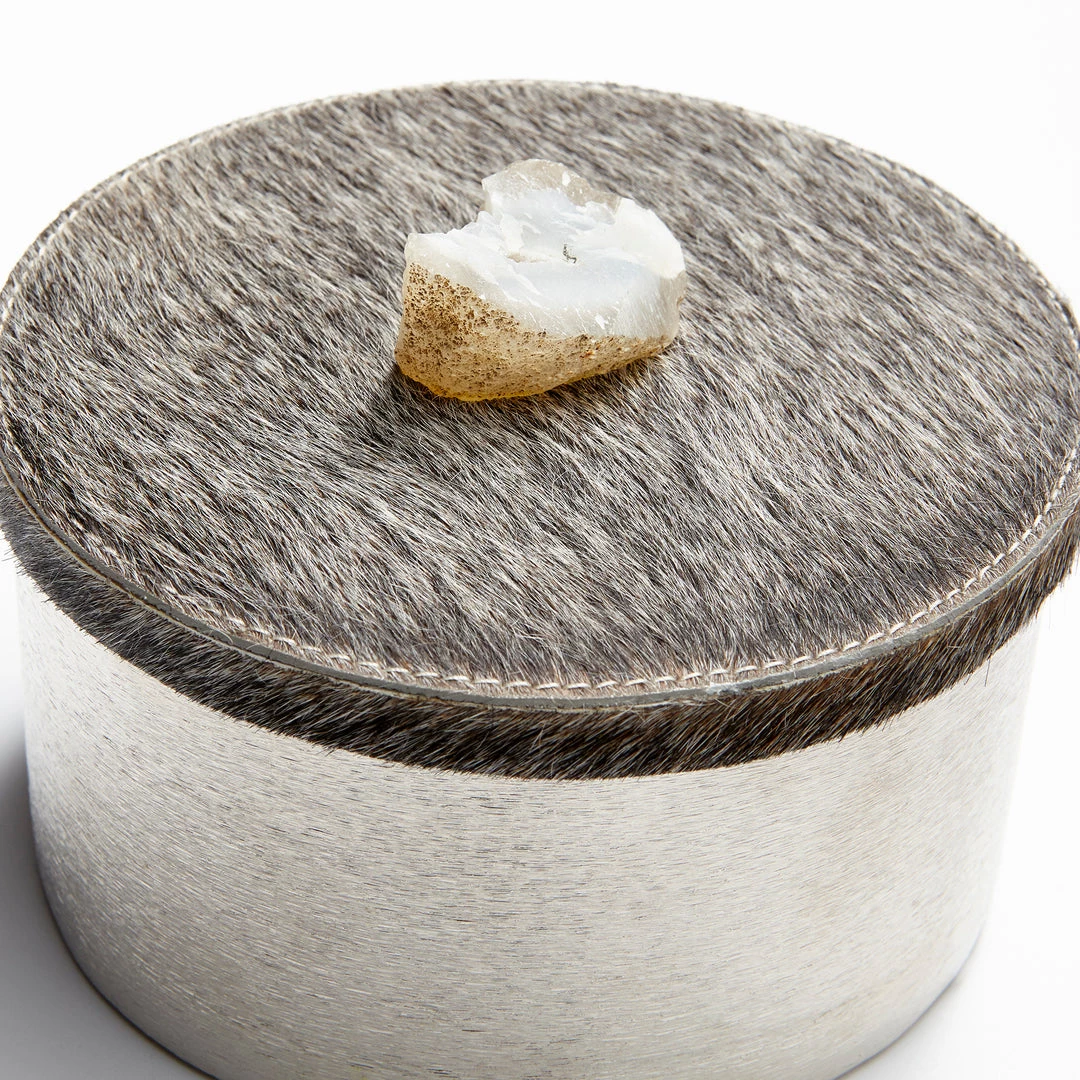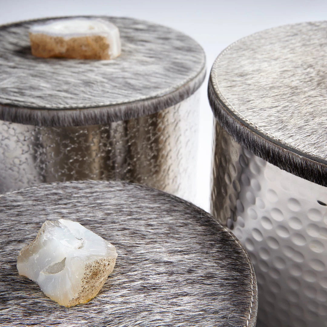 Material: Aluminum, Hair on Hide Leather, Crystal Toppers
