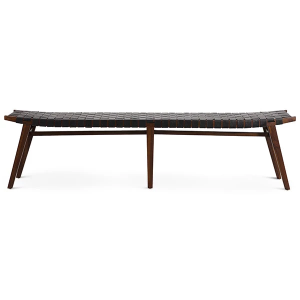 Whether it’s in your entryway or at the foot of your bed, this long and lean bench is sure to make a statement anywhere it’s placed. Featuring woven straps of black full grain leather seating on a dark teak wood frame.