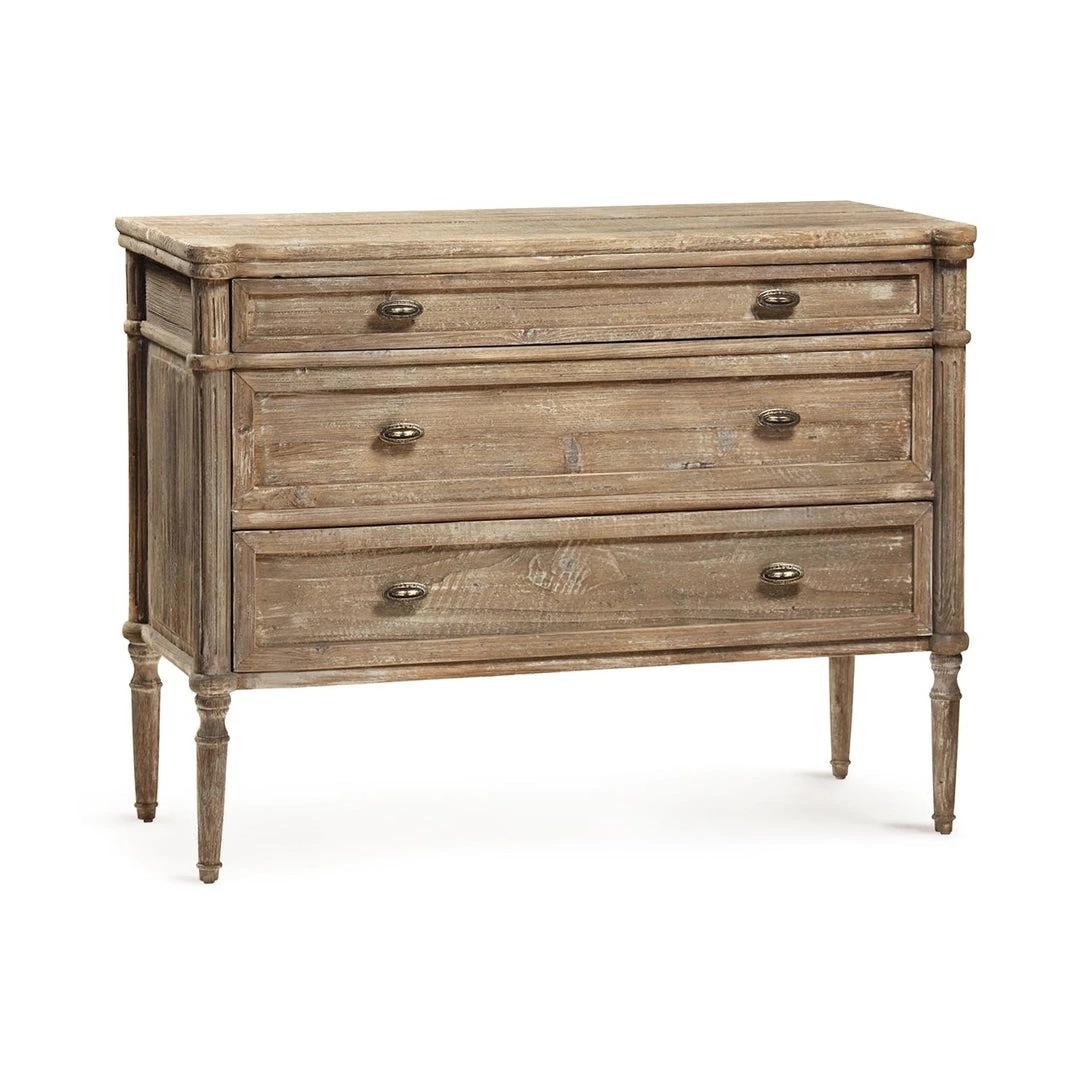 Reminiscent of a flea market find, this beautifully distressed chest of drawers brings antique European charm to bedroom styling.