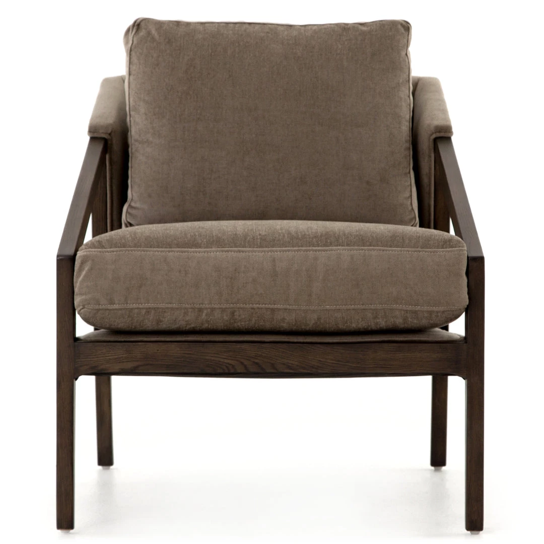 This vintage style occasional chair is a modern ode to popular mid-century design. The burnt oak frame is hand-shaped to deliver a clean, linear structure to plush worn velvet seating in unique silver sage. Perfect paired in office or living area.