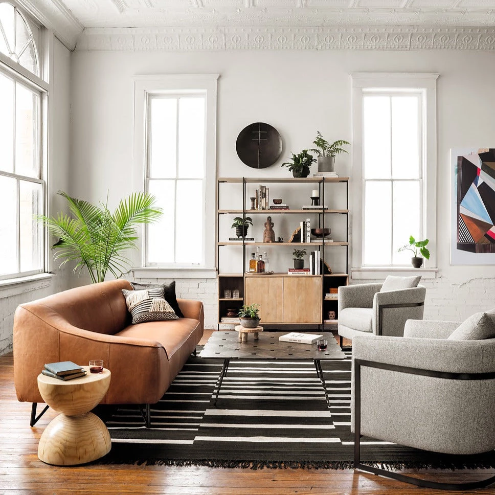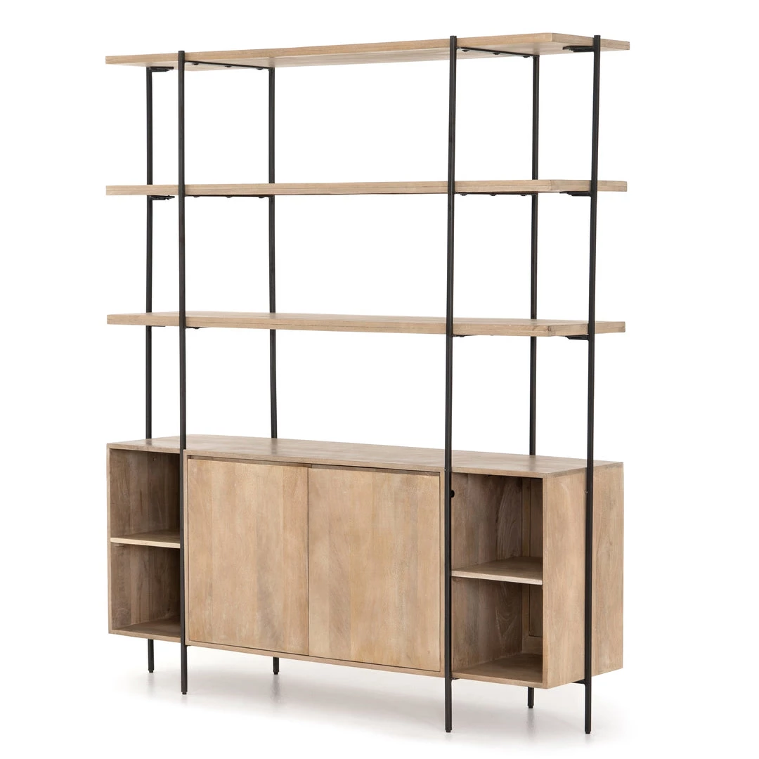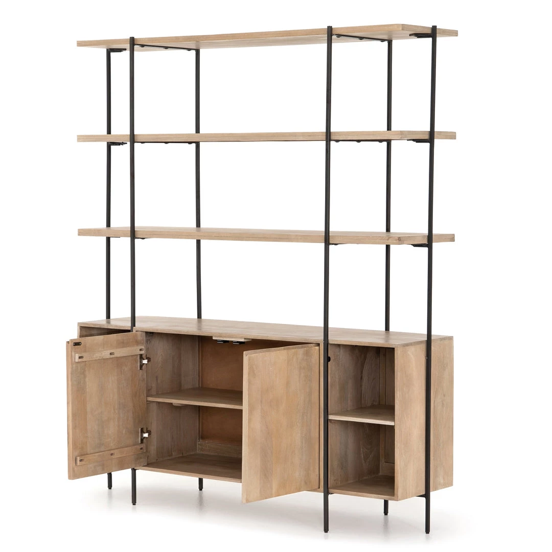 Slim, simple style with organic airs. Natural mango and gunmetal-finished iron merge for eye-catching contrast. Clean and modern, a spacious hutch brings even more storage to this stylish sideboard.