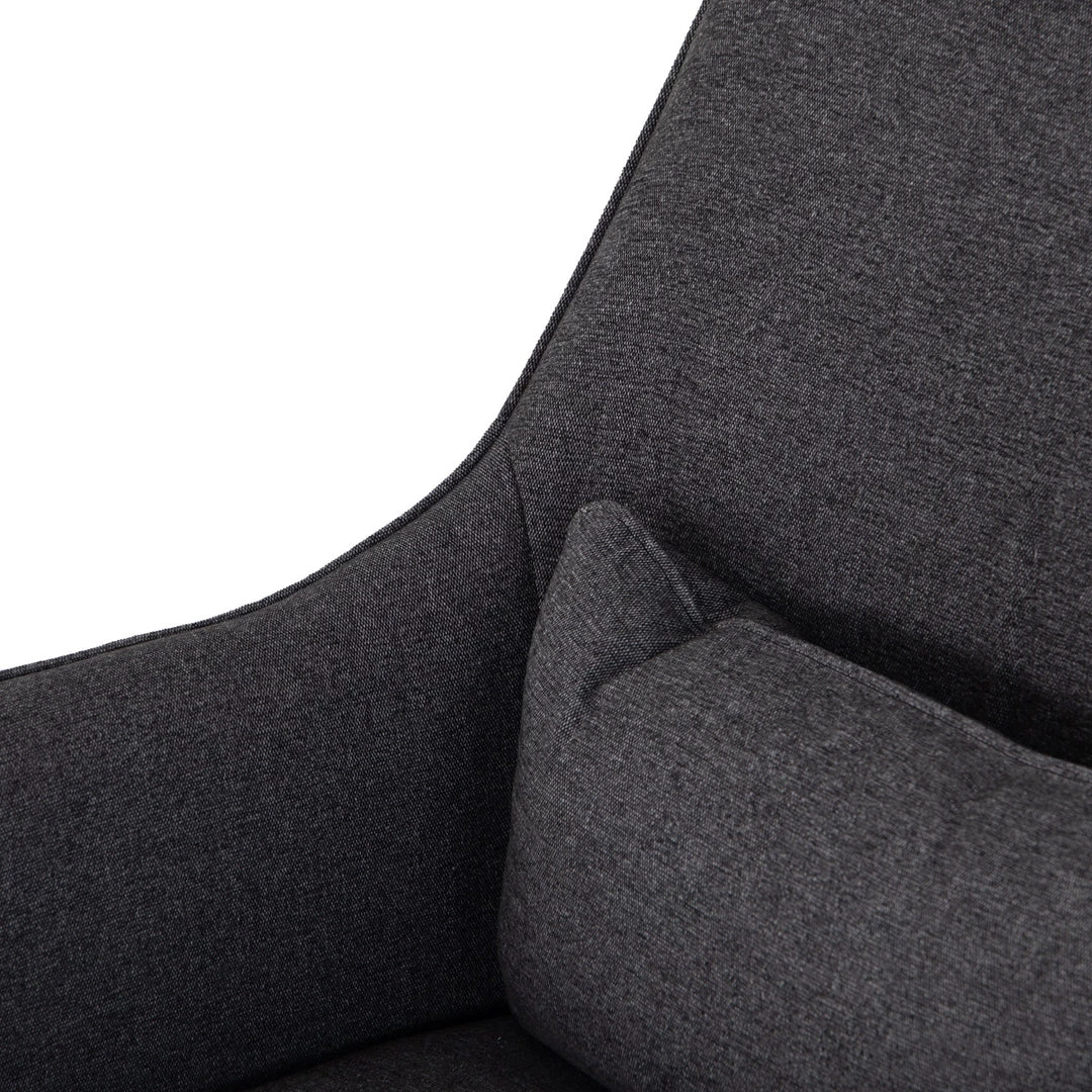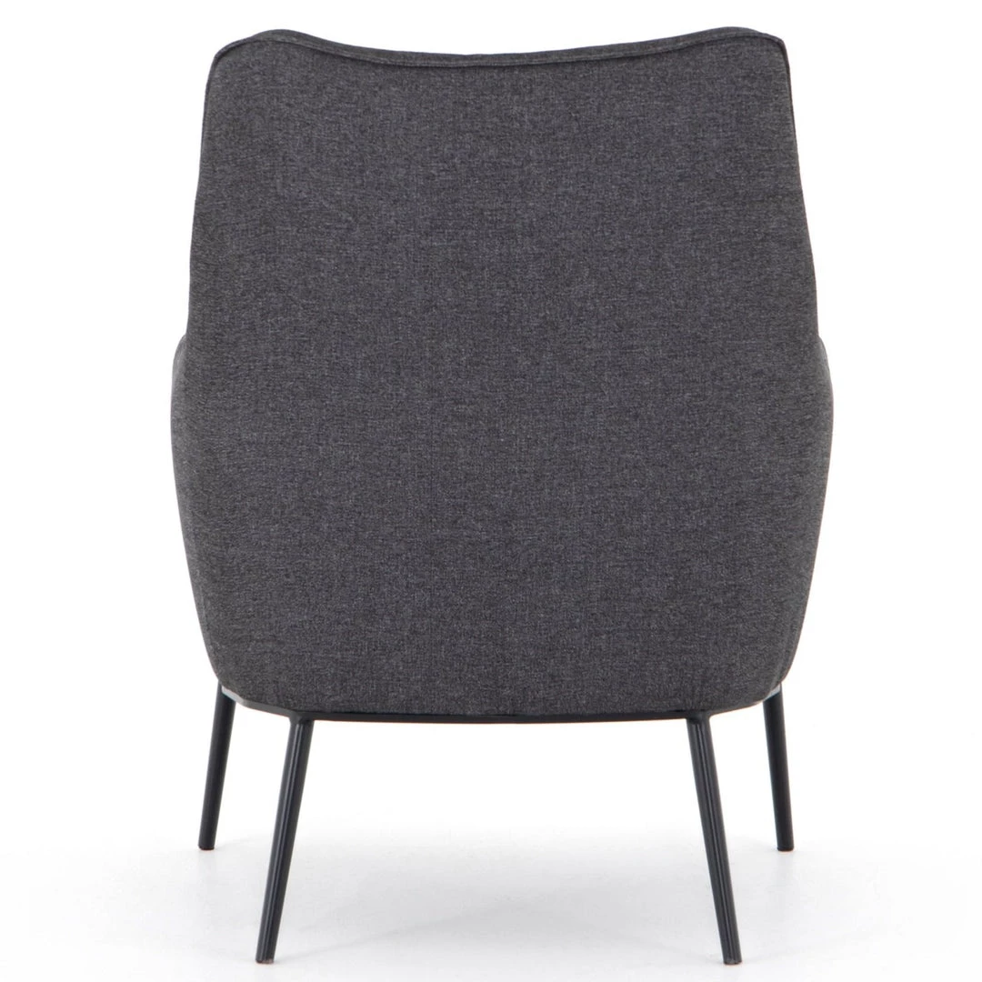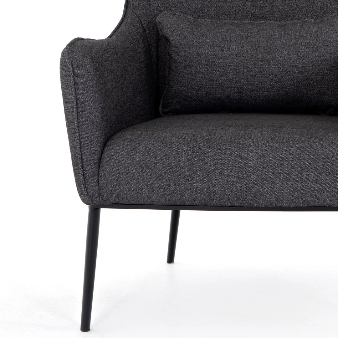 A modern take on the traditional wing chair, Cortez is tailored for comfort with black, menswear-inspired upholstery and perimeter piping for a crisp, clean look. Slim, black-finished iron legs keep things looking airy and light.