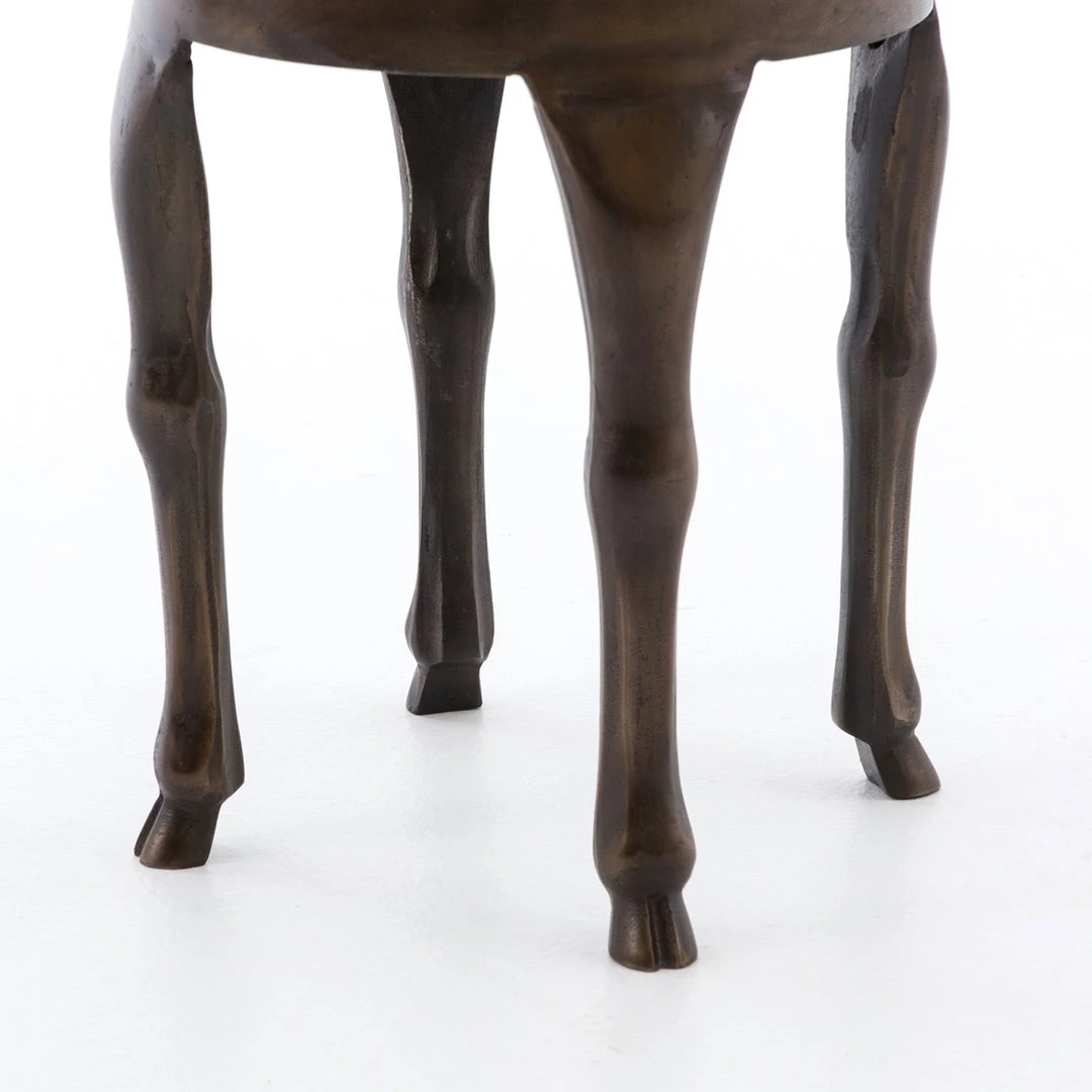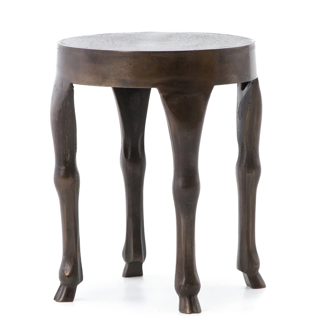 Playful, hoofed feet give this table natural presence, indoors or out. Swirls of color add depth to the antique rust finish.