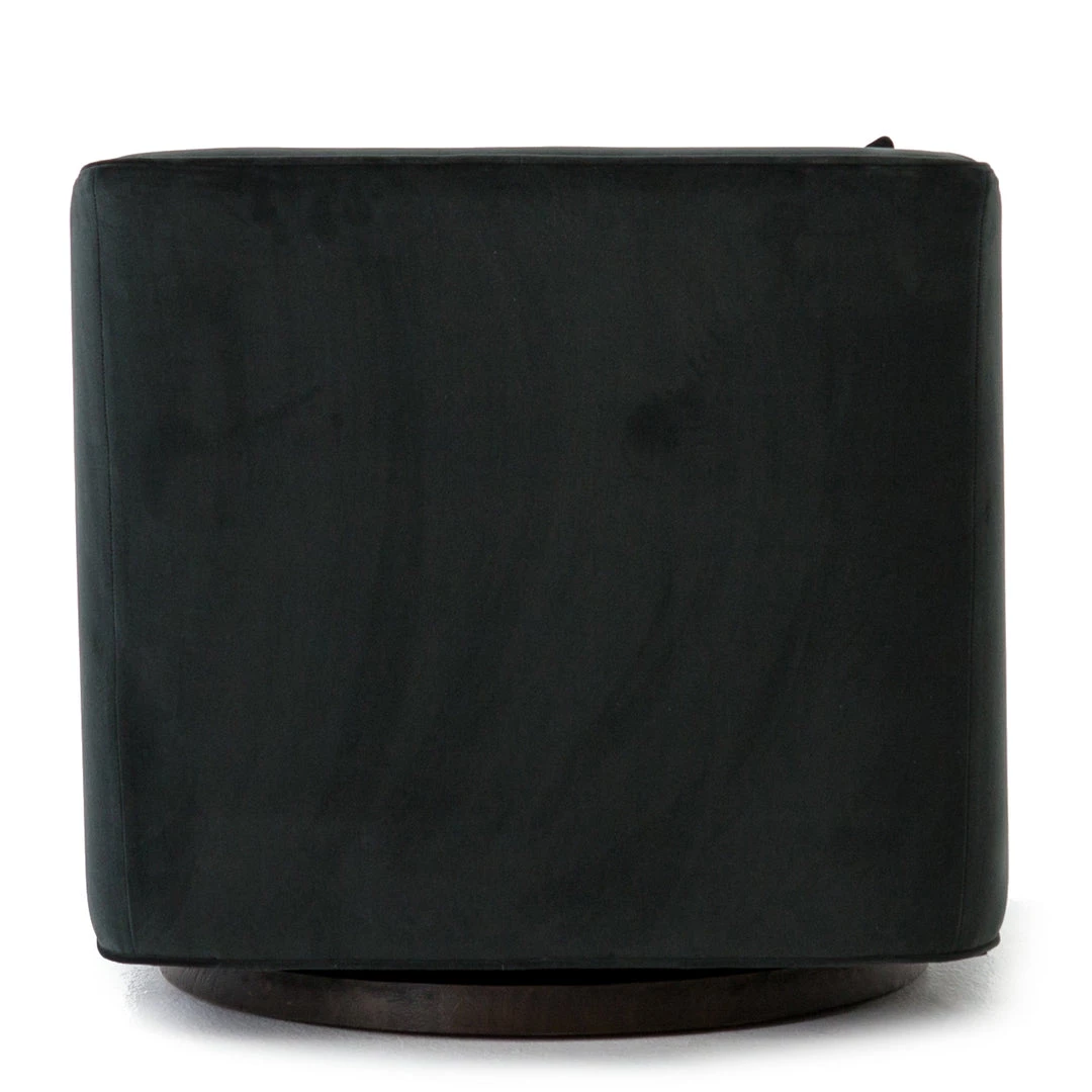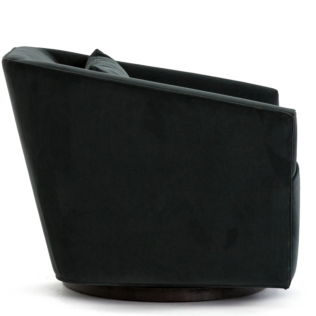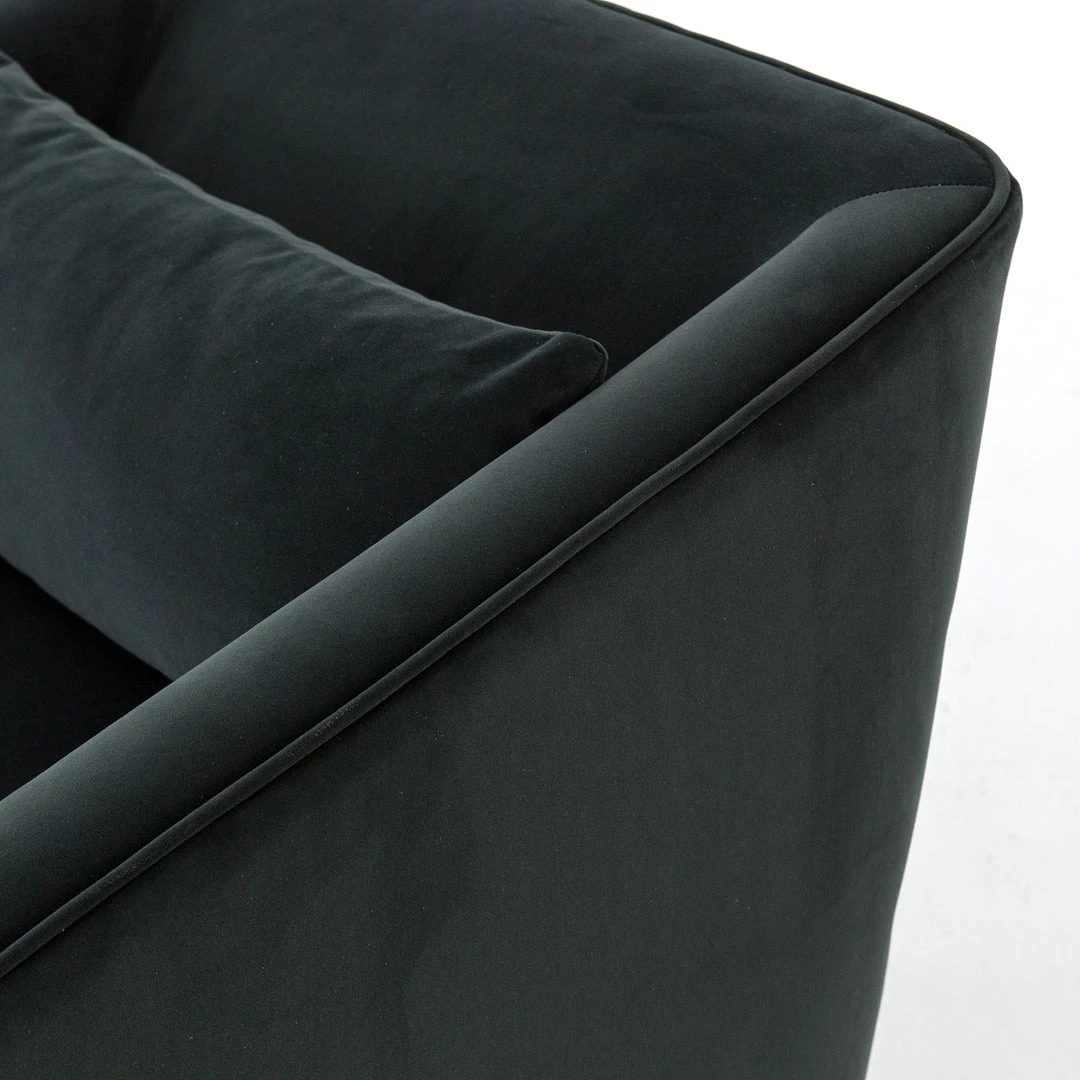 Small scale, substantial comfort. Precisely-tailored seating in a smoky velvet that offers a touch of light movement. Moss-tinged charcoal hue adds a fashion-forward twist.