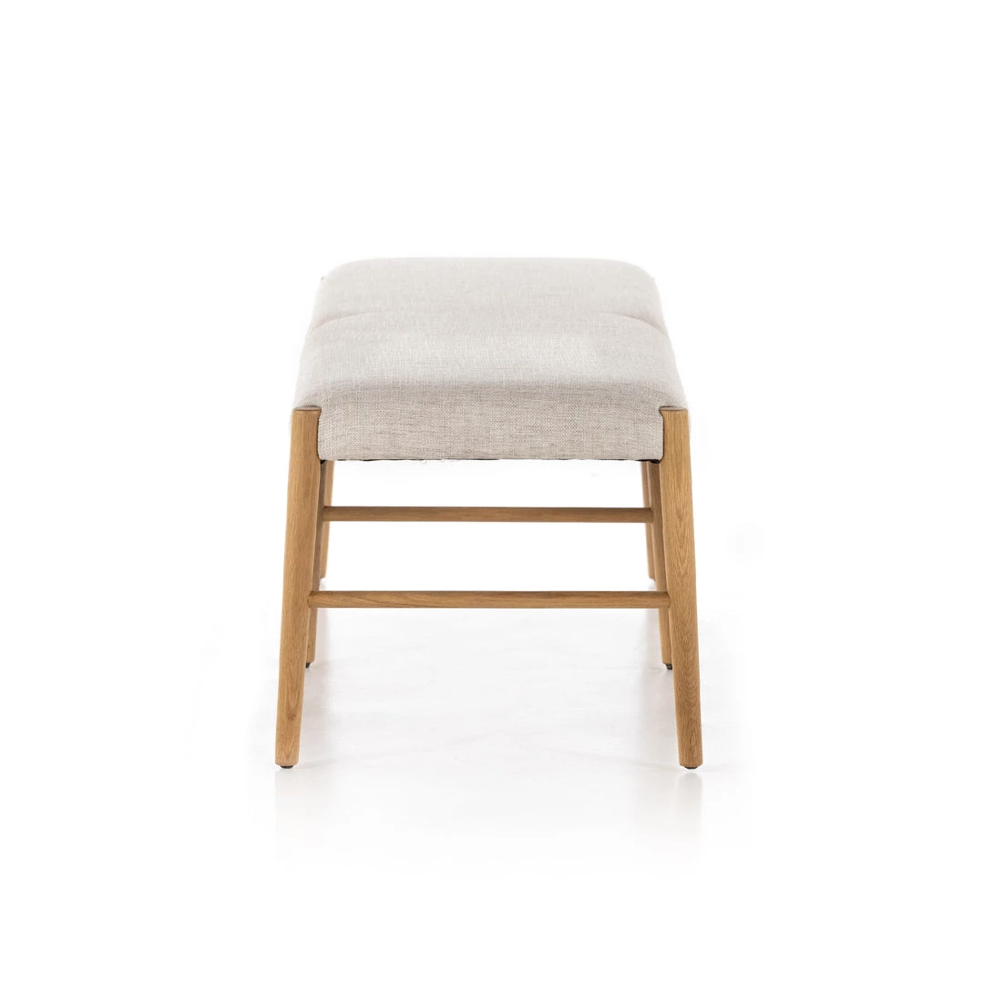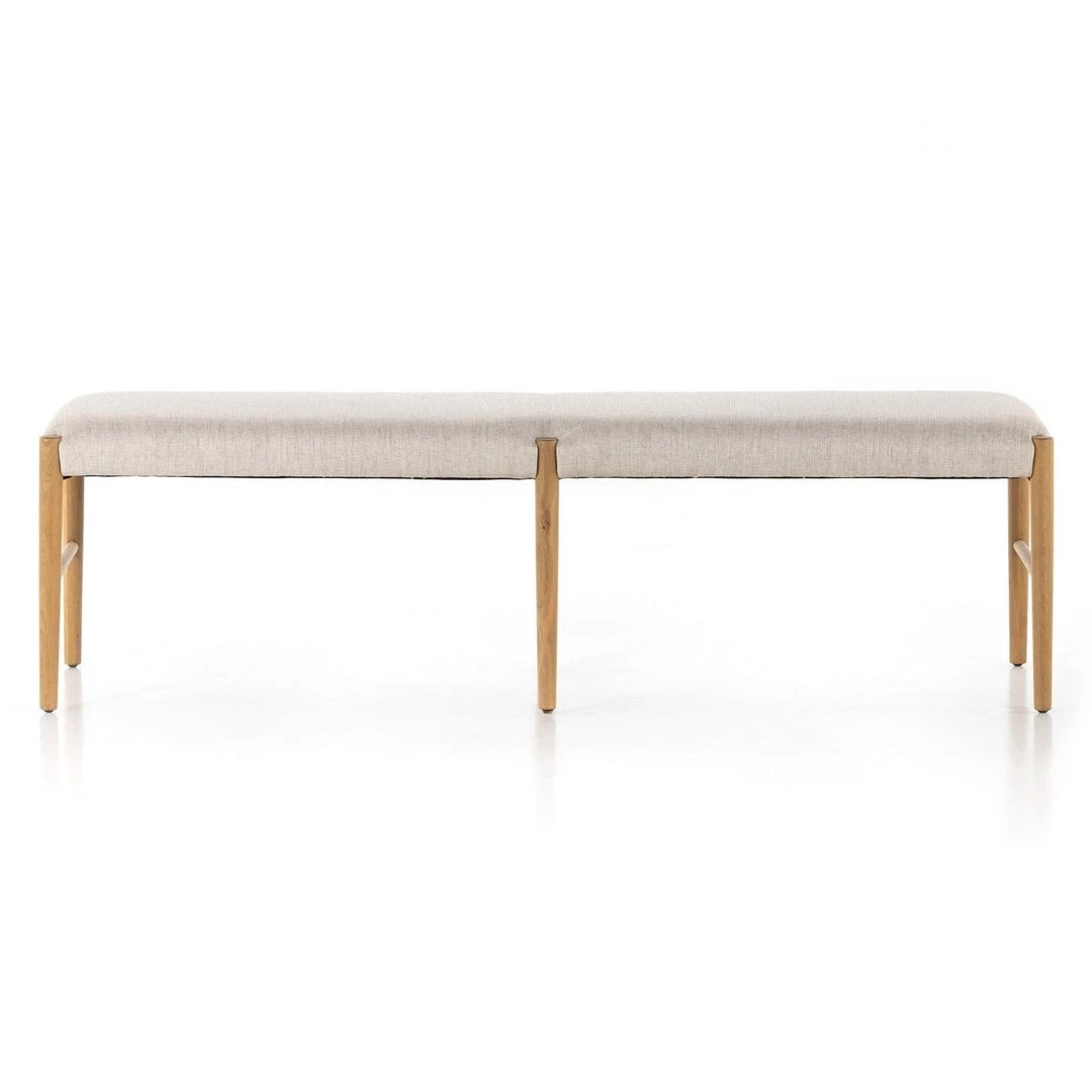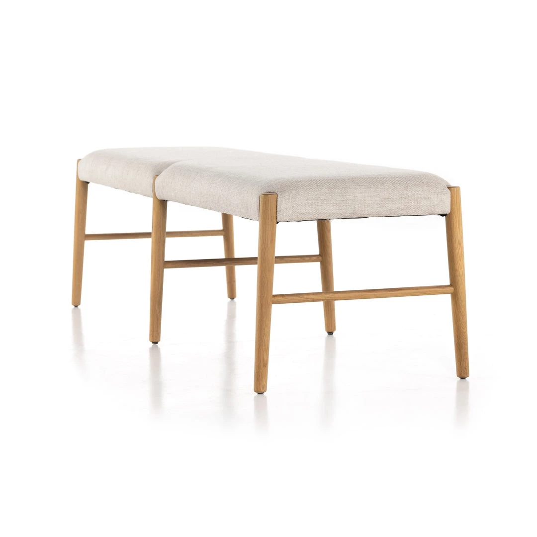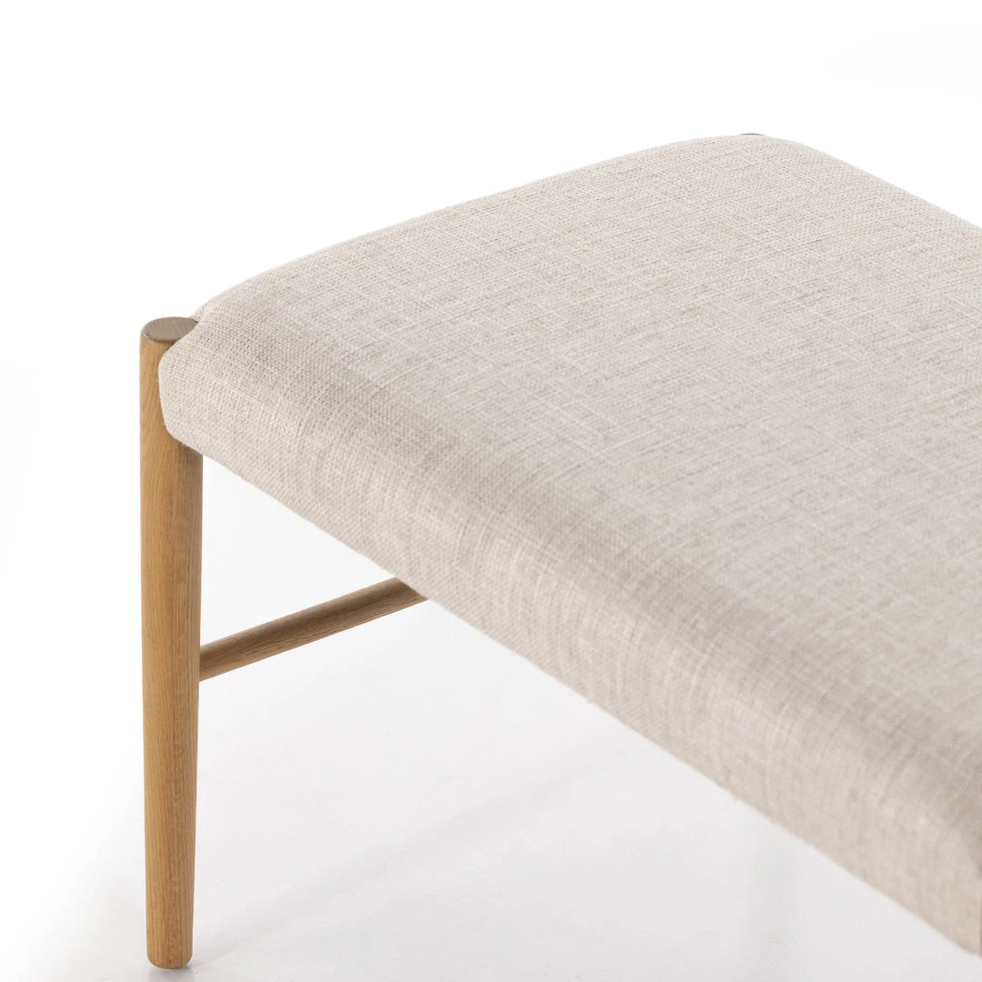 Modern organic materials redefine the classic mid-century Danish-American. Solid oak legs lay a natural-looking base for with off-white seating blends cotton with linen for a textured feel and comfortable sit.