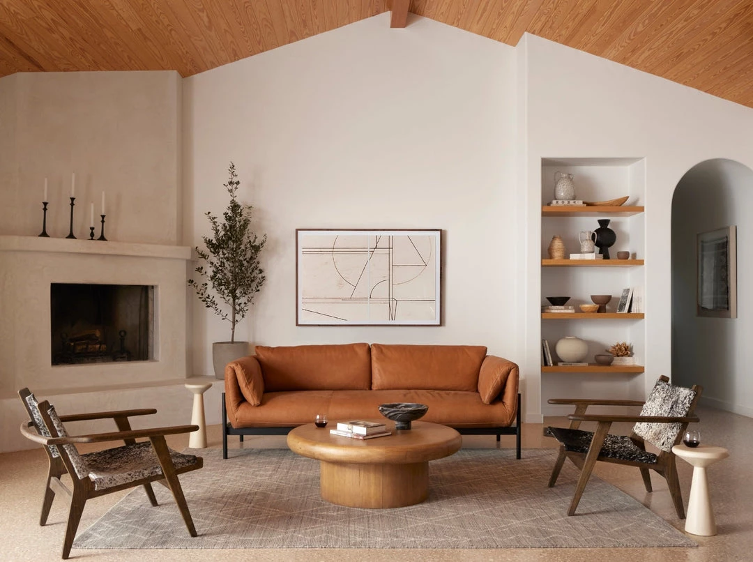 A softer, more modern take on a classic silhouette. Plush cushioning and unique foldover arm details are upholstered in our rich, buttery soft 100% top-grain leather. Matte iron base adds just the right amount of contrast.
