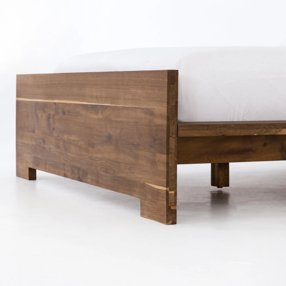 Clean-lined and organic in spirit, solid oak takes on a smoky finish, retaining natural beauty. Structural cutouts add intrigue to a streamlined form, adding to stylish versatility.