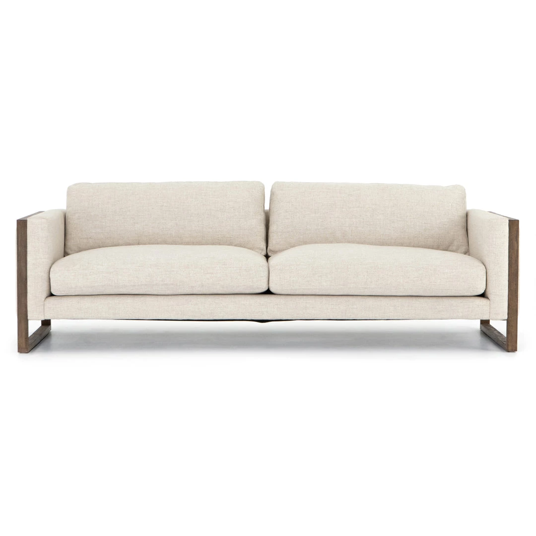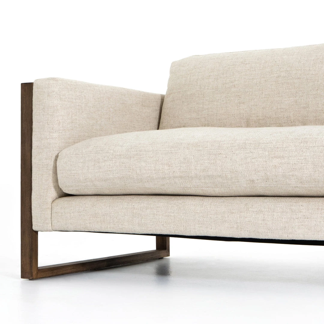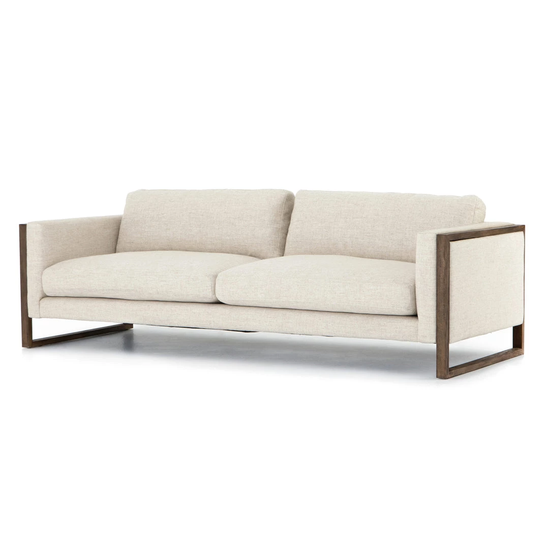 Crisp, clean comfort. Cream-colored upholstery of performance grade cradles within an exposed parawood frame, for detail-driven contrast.