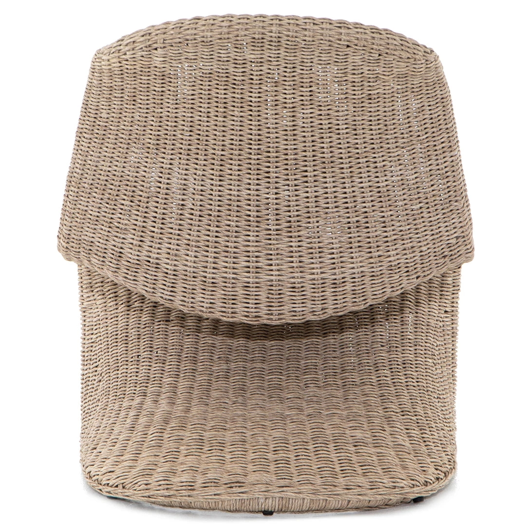 Strike a pose. Finished in a vintage white, all-weather wicker seating curves for shapely intrigue, indoors or out.