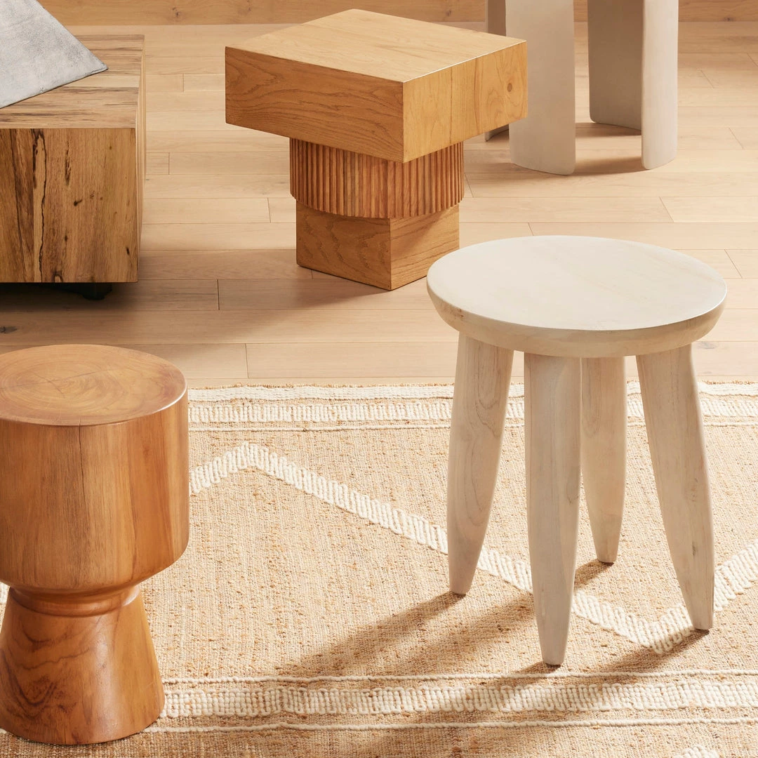 Inspired by West African design, solid ivory teak features organic knots, holes and graining to reflect its materials’ rich roots, indoors or out.