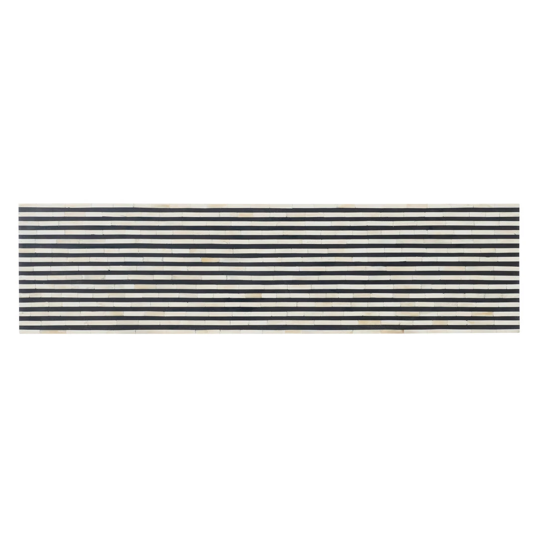 This console’s simple rectangular u-shape is made modern glam with it’s black and white striped bone inlay mosaic covering perfect for adding a fun graphic pattern in a hall or entry.