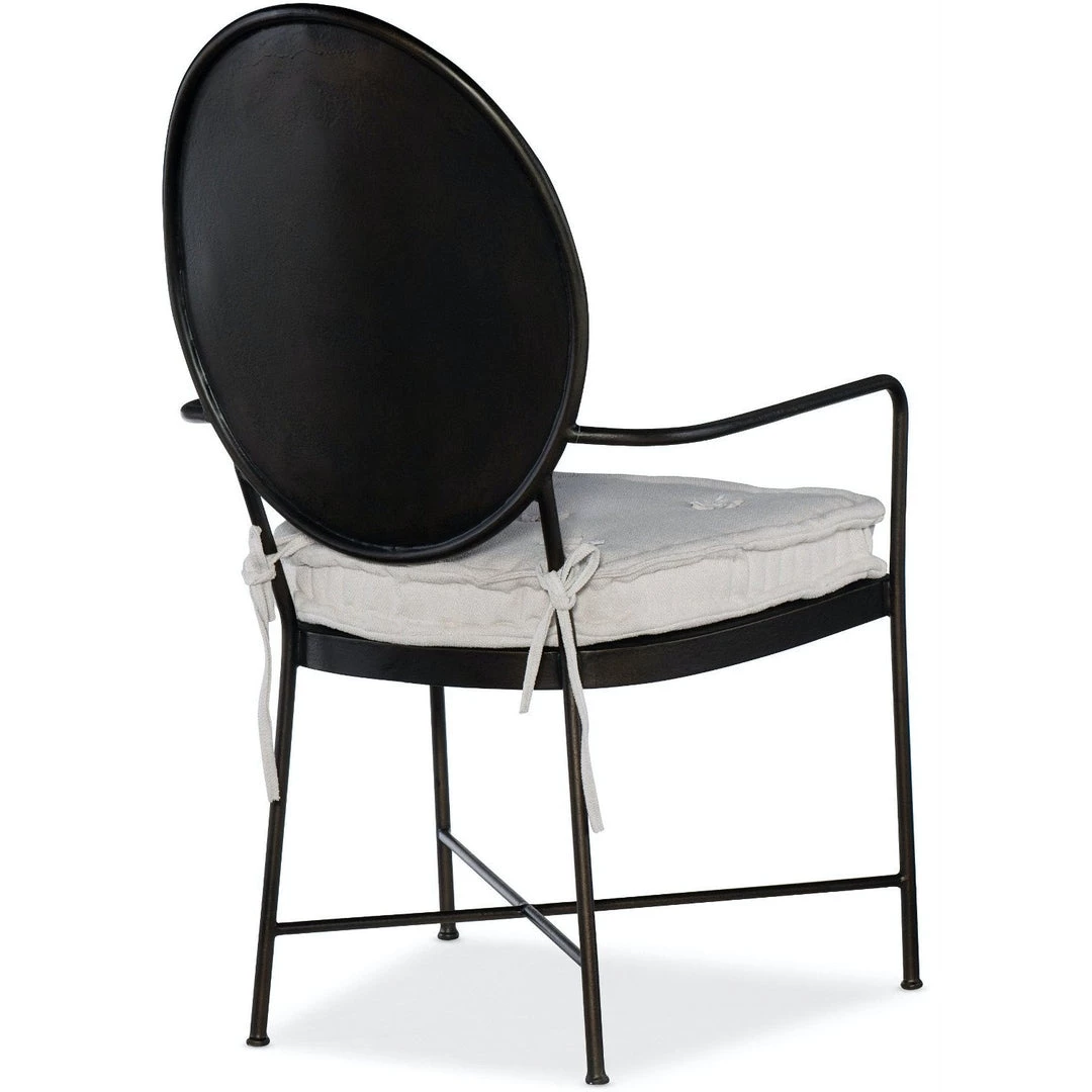 Iconic, industrial luxe with a romantic French attitude. The metal frame is finished in an Aged Bronze, and the removeable, reversible Tuscan White seat cushion is button tufted on one side with French primitive tufting on the other for comfort.