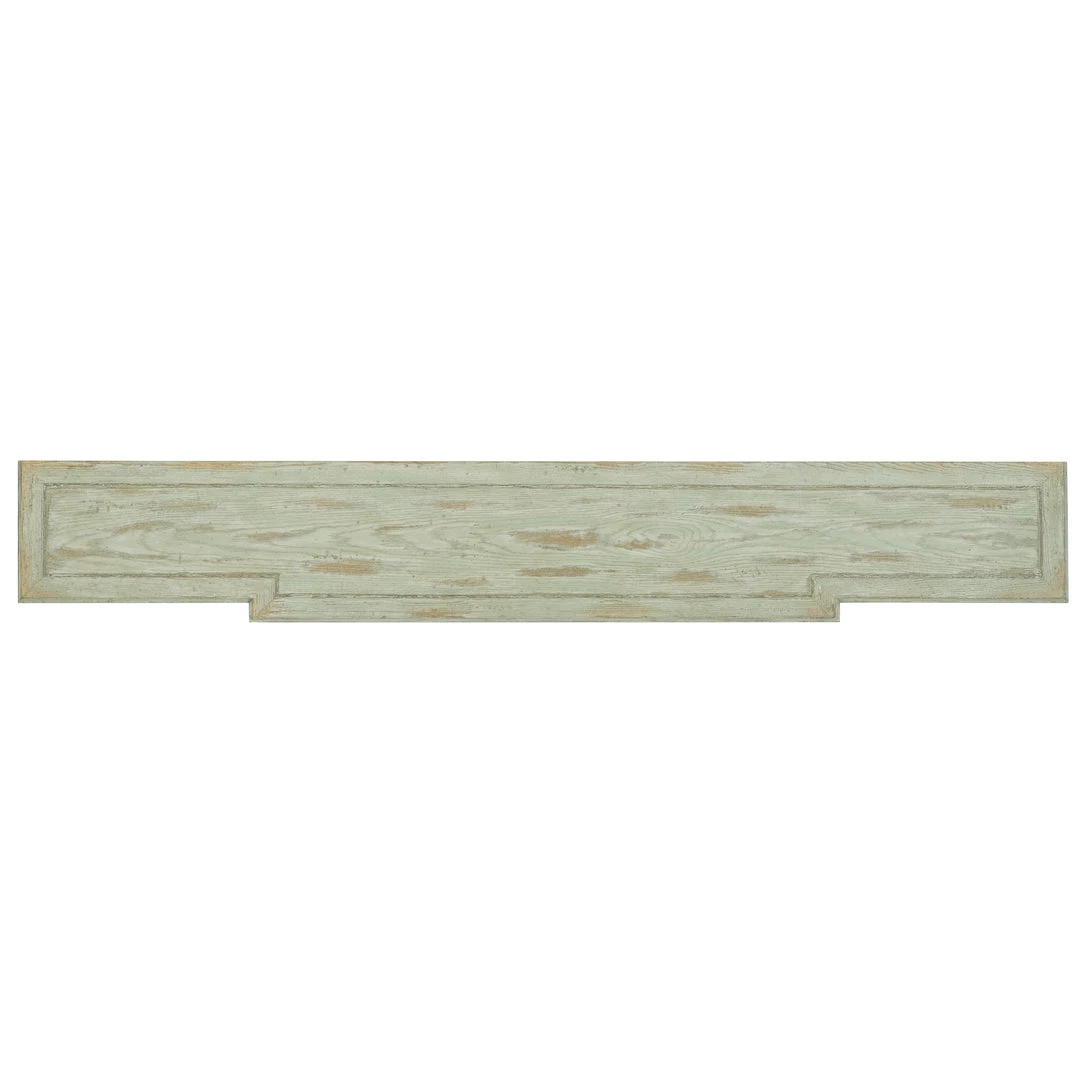 Finish: Pistachio, a muted accent finish with a subtle green hue. Distressing includes sandblasting, handplaning, chopping, hammering and wormholes.