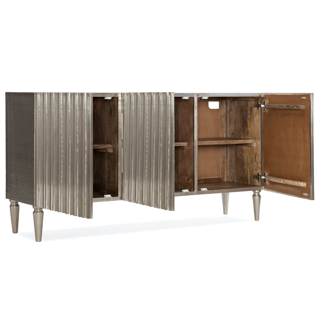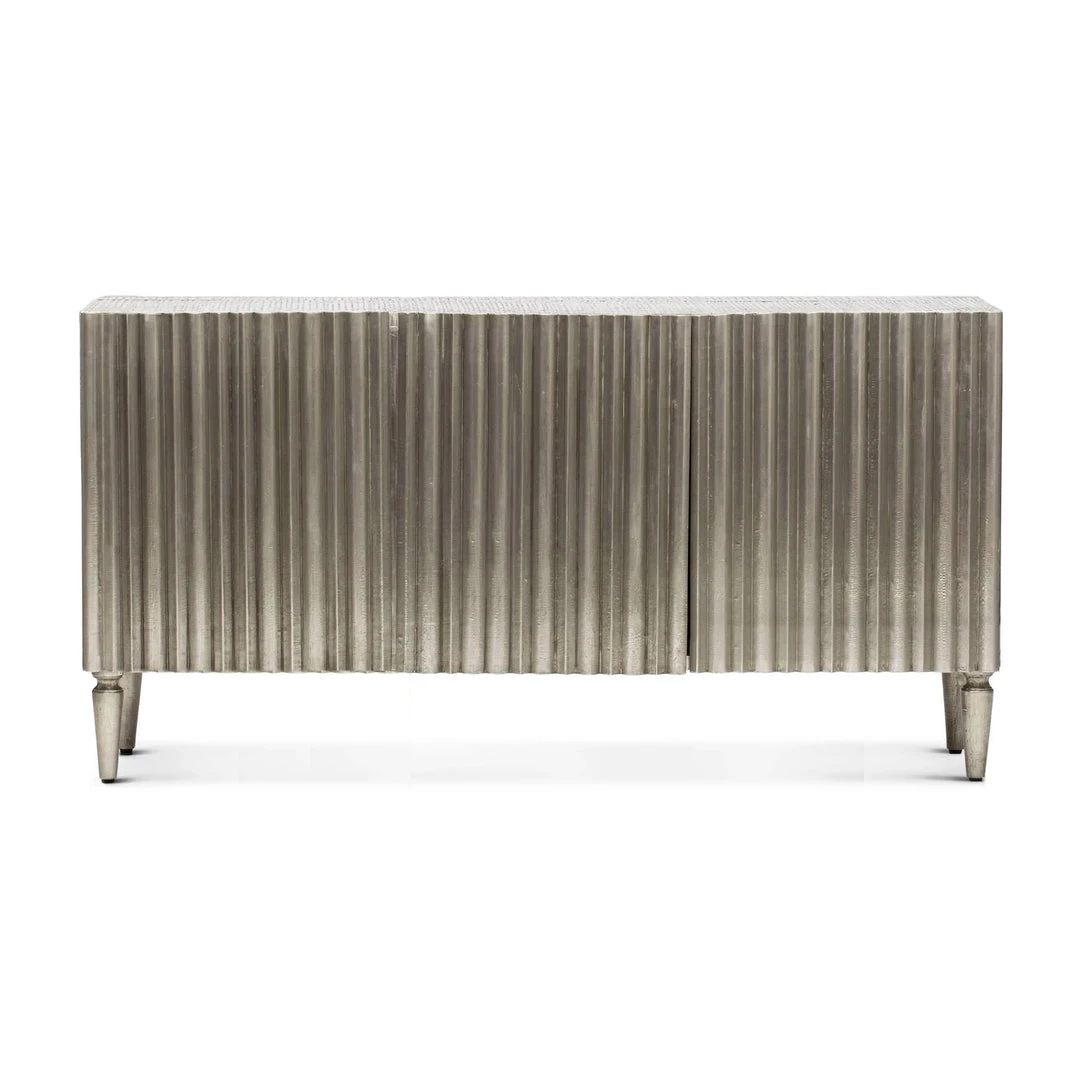 Channeling jet setting socialites from the golden age of Hollywood, the German Silver Console is a dramatic and striking focal point to glam up any interior. The exquisite ribbed door fronts create a play on light that makes the metallic silver finish really shine. Use in a dining room or a as chic media storage