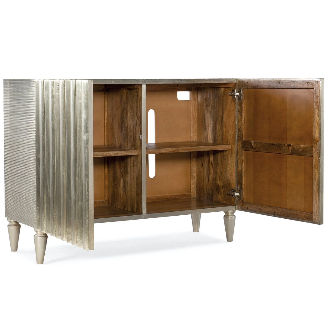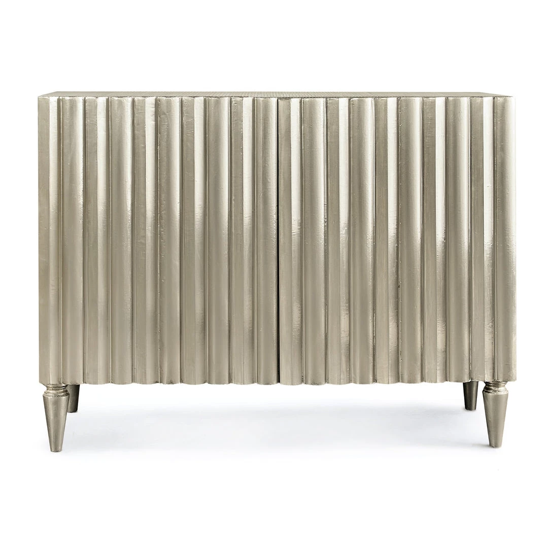 Channeling jet setting socialites from the golden age of Hollywood, the German Silver Chest is a dramatic and striking focal point to glam up any interior. The exquisite ribbed door fronts create a play on light that makes the metallic silver finish really shine.Â