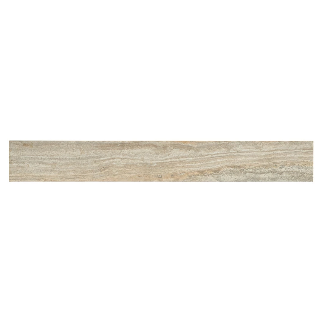 Materials: Honed Gray Travertine Stone Veneers and Metal