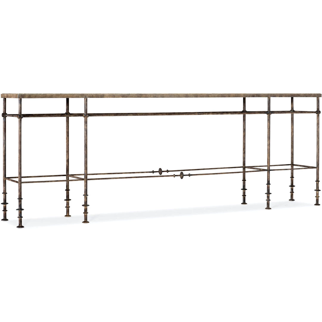 The epitome of rustic elegance, the St. James Console combines a polished stone top with an oxidized iron base to create a stylish focal point.