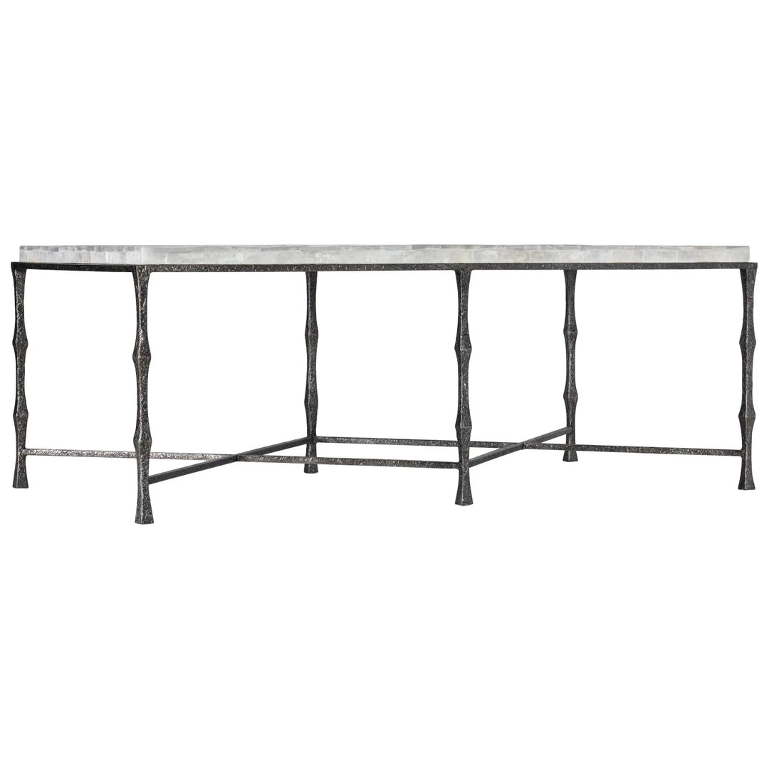 A delightful medley of natural materials and organic color tones, the versatile Surfrider Coffee Table has a Gypsum top in a multicolored blend of whites, creams and beiges and six charcoal-colored distressed metal legs and stretchers. Melding the salty, yet cozy oasis of the California coastline with a modern surf culture, Surfrider is defined by the use of natural materials including rattan, jute rope, stone, gypsum, bamboo and driftwood motifs. Designed to create relaxing spaces to escape from the pressures of modern life, it is featured in a light, natural Driftwood finish. Luxurious materials, shapes and textures combine to create a relaxed, yet sophisticated style that epitomize the lifestyle of a casual, beach-town community.