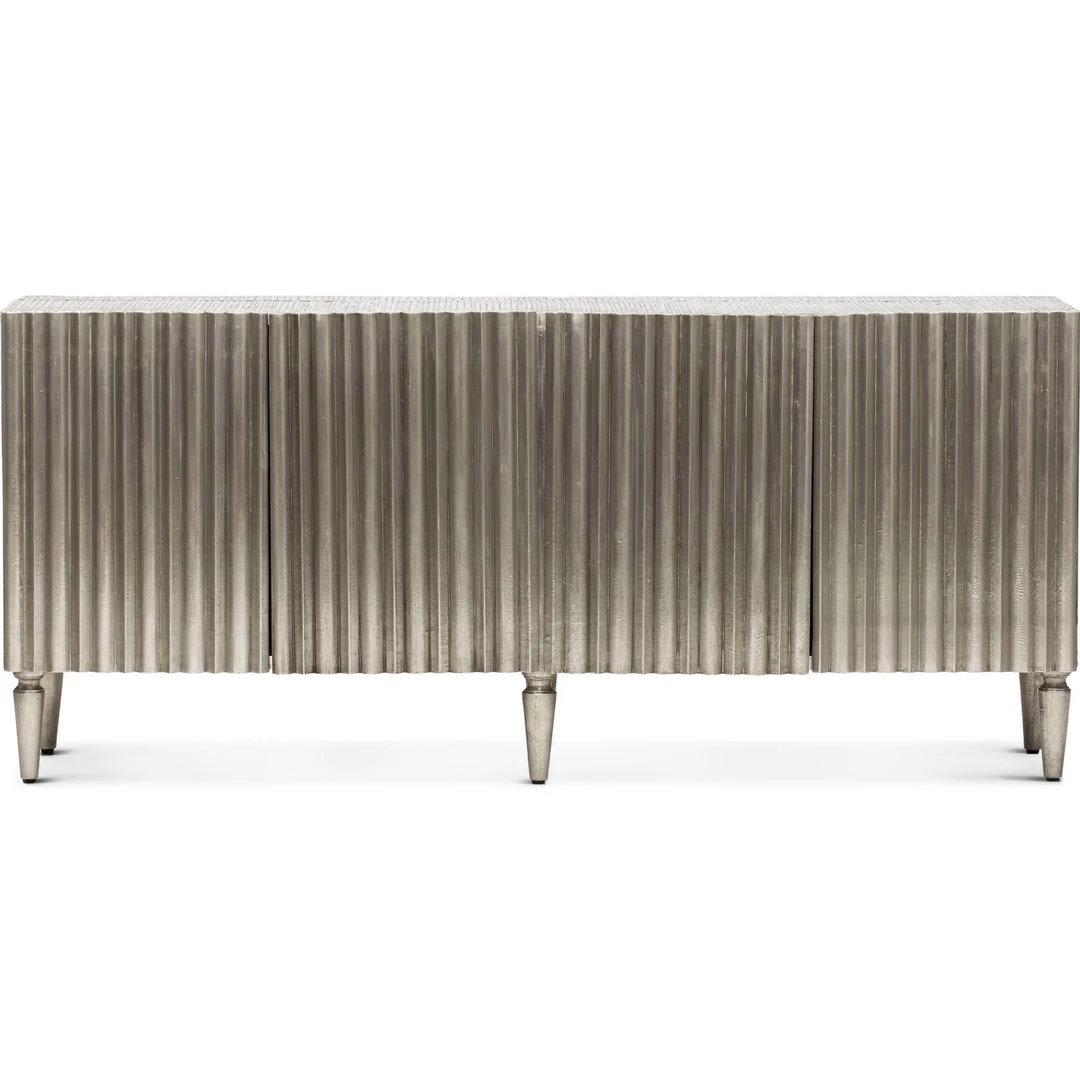 Channeling jet setting socialites from the golden age of Hollywood, the German Silver Console is a dramatic and striking focal point to glam up any interior. The exquisite ribbed door fronts create a play on light that makes the metallic silver finish really shine.