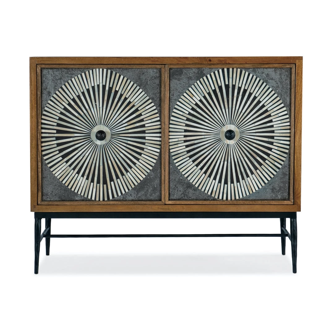 In a study of juxtapositions, the media-ready Kente Console combines linear and circular forms and a mix of materials including mango wood, bone inlay and slate veneer to create a striking contrast that is sure to take center stage in any space.