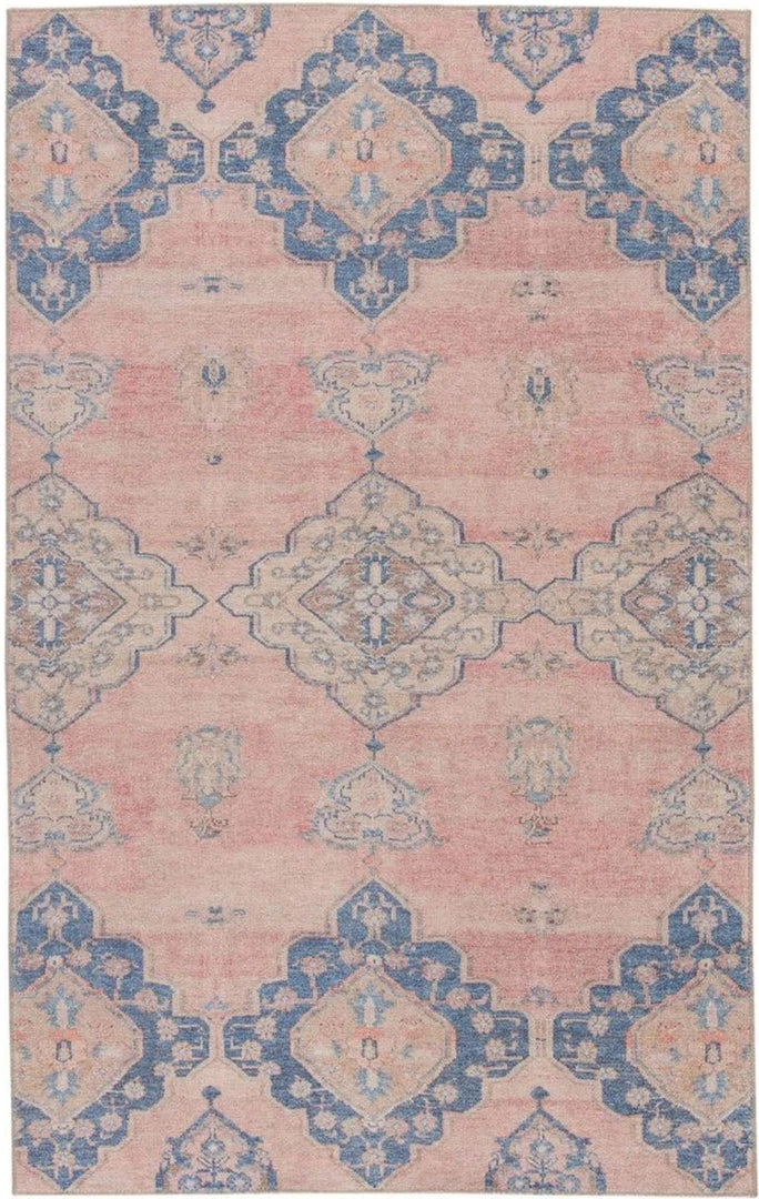 The vintage-inspired Kairos collection brings a playful and warm vibe to contemporary spaces. The Adalee rug features dusty pink and blue diamond medallions with subtle distressing for a romantic, elegantly worn look. This printed style offers the timelessness of a classic Turkish motif with the versatility and affordability of a power-loomed rug.