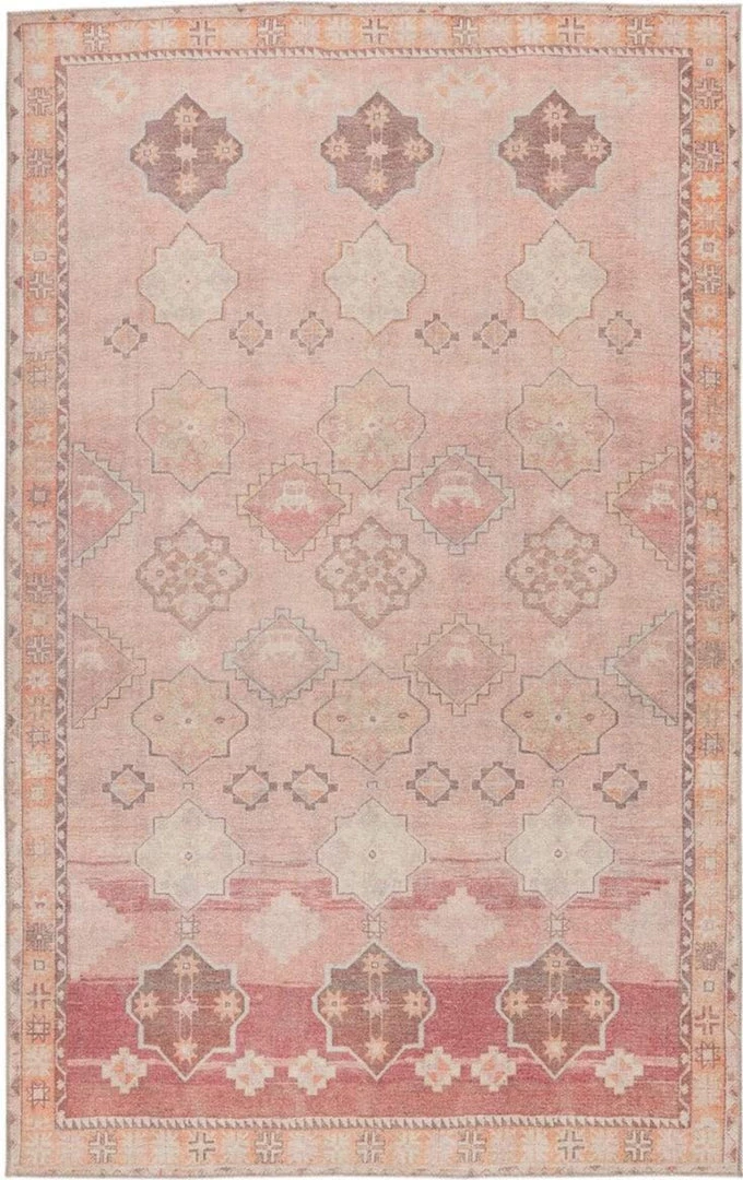 The vintage-inspired Kairos collection brings a playful and warm vibe to contemporary spaces. The Bijou rug features a dusty pink and taupe medallion pattern with a detailed terracotta border. This printed style offers the timelessness of a classic Turkish motif with the versatility and affordability of a power-loomed rug.