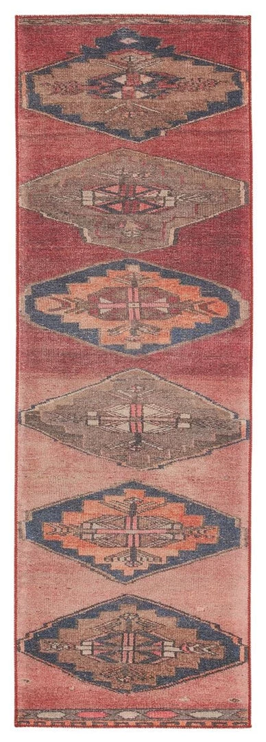 The vintage-inspired brings a playful and warm vibe to contemporary spaces. The Mirta rug features a tribal medallion design in vibrant tones of pink, orange, gray, and dark blue, perfectly distressed for a boho-chic touch. This printed style offers the timelessness of a classic Turkish motif with the versatility and affordability of a power-loomed rug.