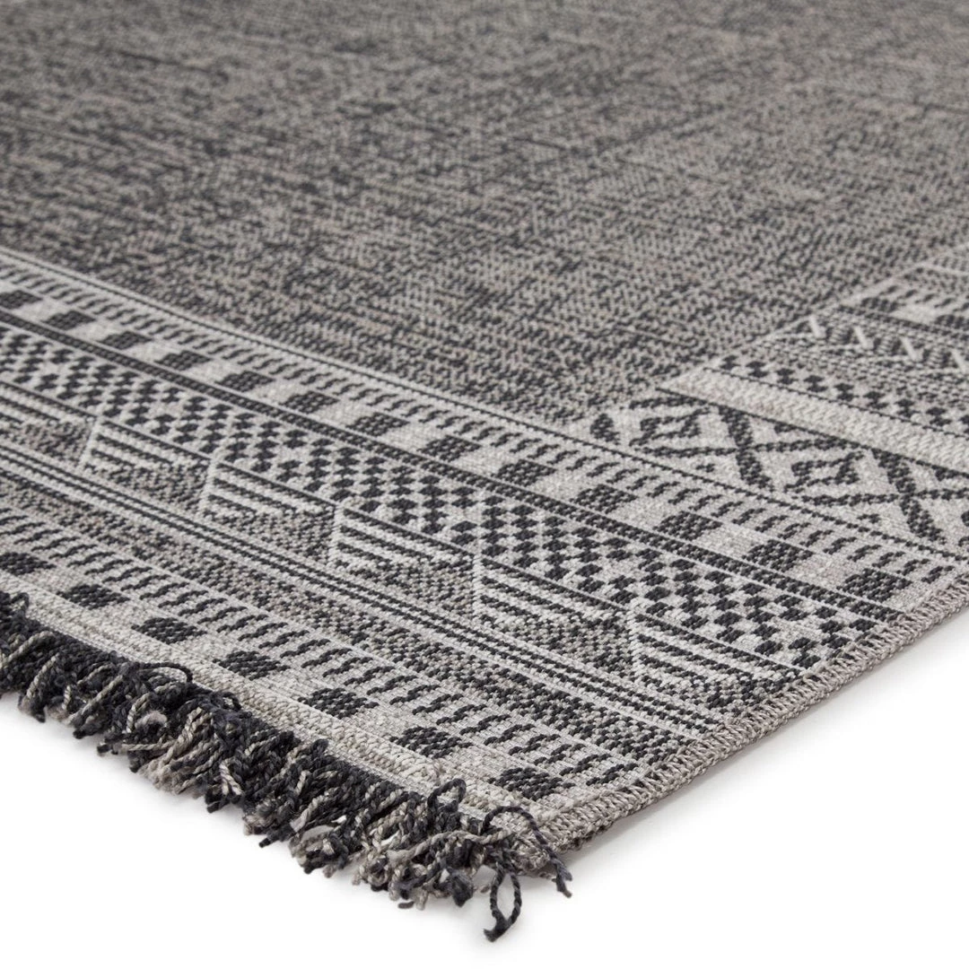 With an assortment of relaxed, bohemian designs, the Tikal collection is the perfect weather-resistant and stylish accent for outdoor and indoor settings. The flat-woven Kiyan rug features a pattern-rich tribal border that frames a heathered center, accented by chic fringe for added texture. The tonal gray colorway offers a versatile decorating palette to any space.
