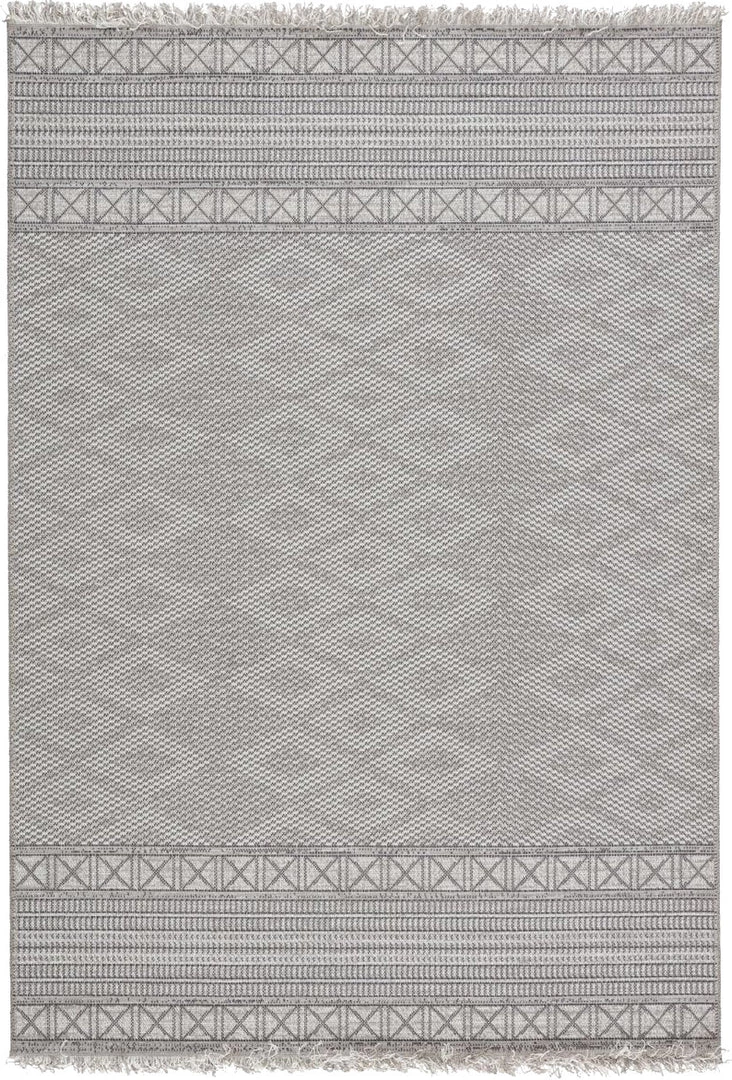 With an assortment of relaxed, bohemian designs, the Tikal collection is the perfect weather-resistant and stylish accent for outdoor and indoor settings. The flat-woven Ramos rug features bands of tribal patterning accented by geometric shapes and texture-rich fringe. The tonal gray colorway offers a versatile decorating palette to any space.