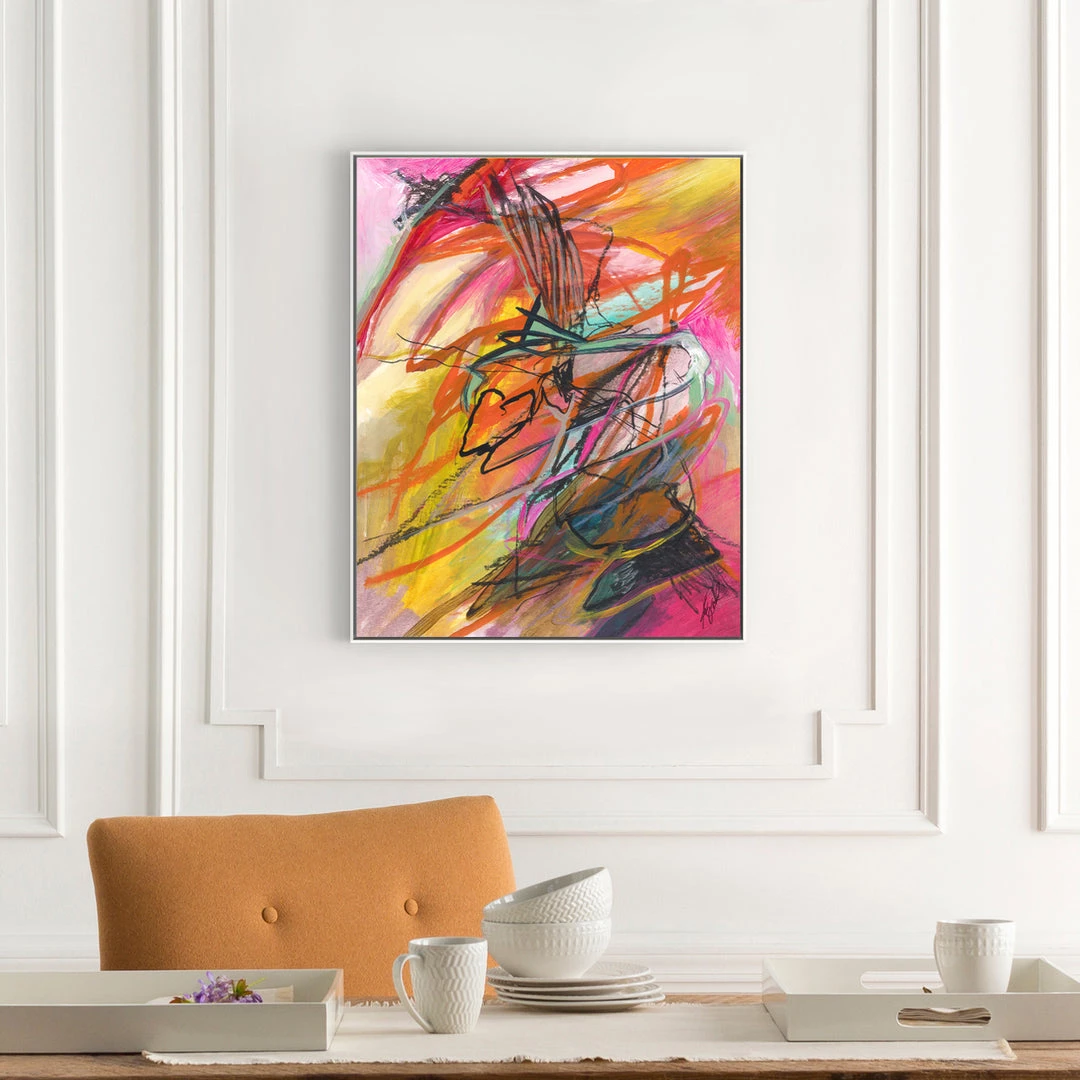 “Abstract 303″ artwork by Kelly O’Neal is printed on canvas with strokes of the original image applied with an artist brush to enhance the authentic feel of the piece. This gallery-wrapped giclee is hand stretched over 1.5” stretcher bar with your choice of optional frame finishes.