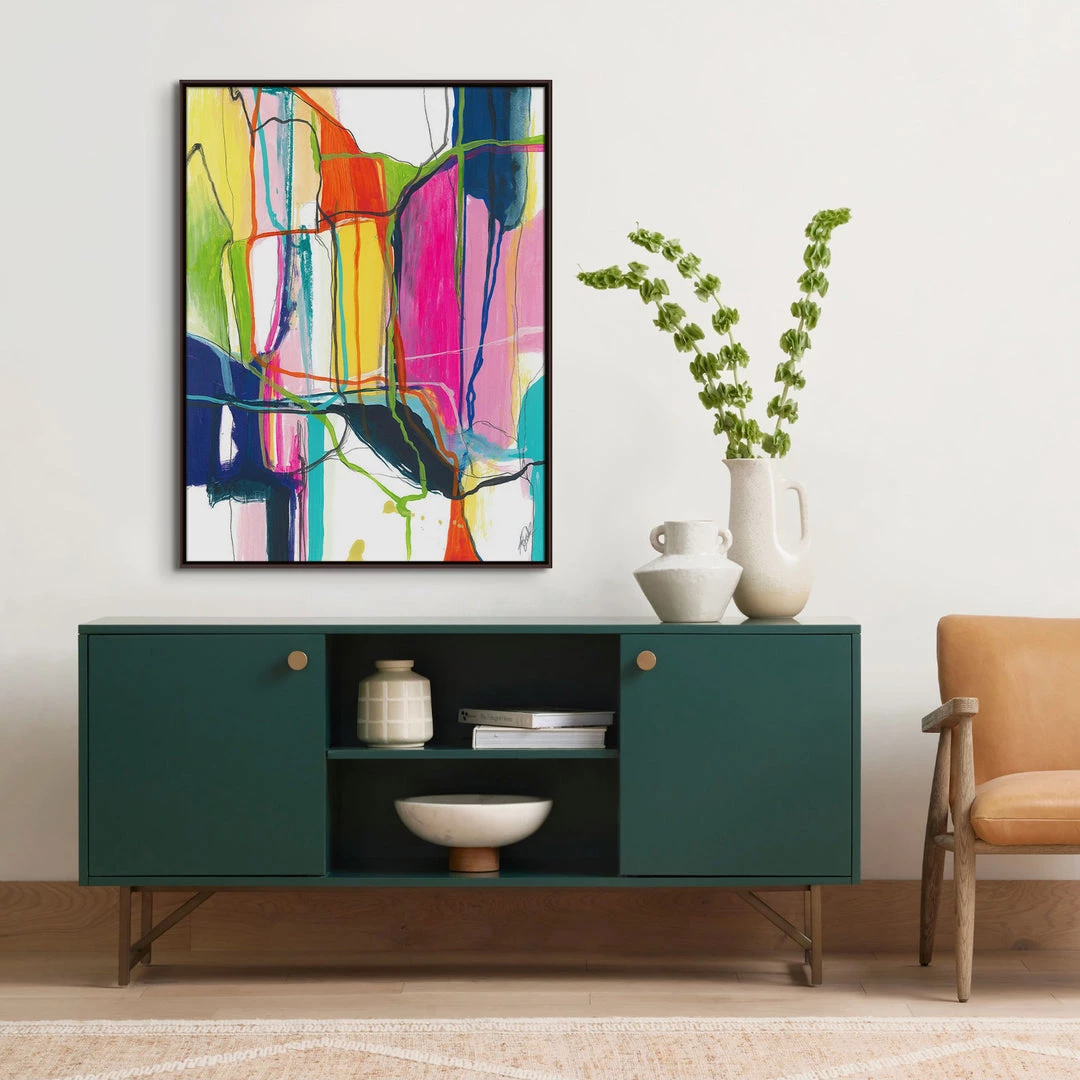 “Abstract 319″ artwork by Kelly O’Neal is printed on canvas with strokes of the original image applied with an artist brush to enhance the authentic feel of the piece. This gallery-wrapped giclee is hand stretched over 1.5” stretcher bar with your choice of optional frame finishes.