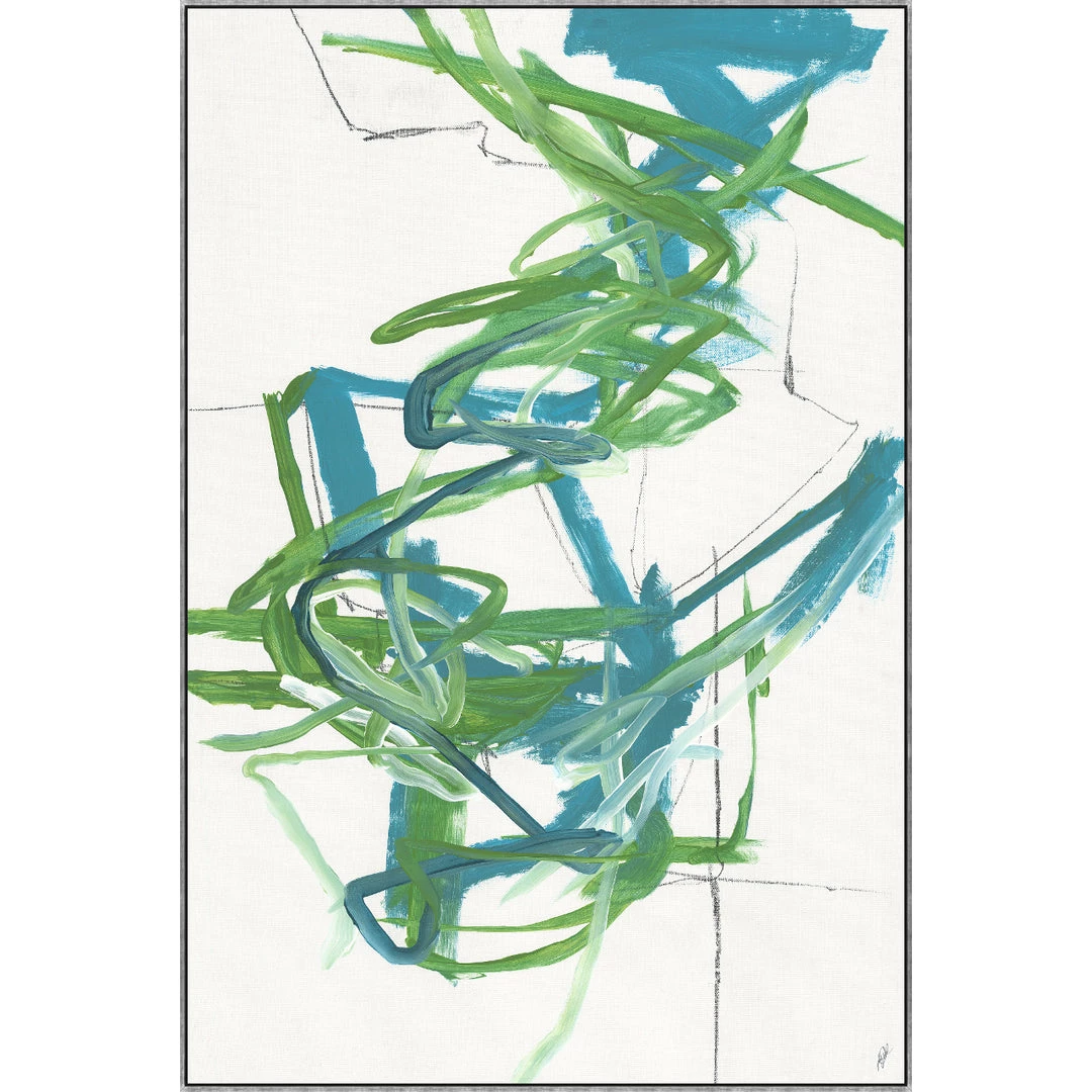 “Affrettando” by Kelly O’Neal abstract artwork in vivid blue-greens is printed on canvas with strokes of the original image applied with an artist brush to enhance the authentic feel of the piece. This gallery-wrapped giclee is hand stretched over 1.5″ stretcher bar with your choice of optional frame finishes.