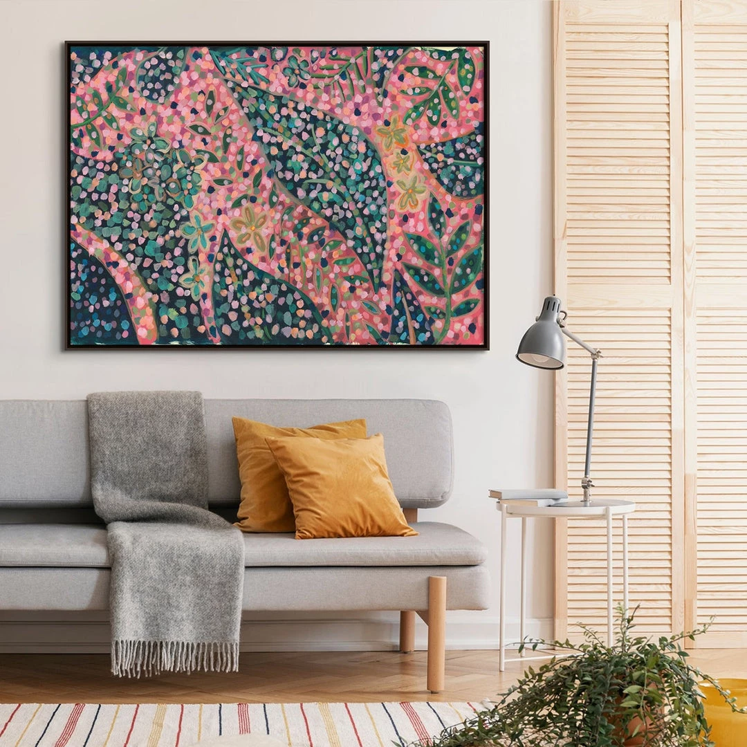 “Candy Sherbet Green” whimsical floral artwork by Victor Ryan is printed on canvas with strokes of the original image applied with an artist brush to enhance the authentic feel of the piece. This gallery-wrapped giclee is hand stretched over 1.5″ stretcher bar with your choice of optional frame finishes.