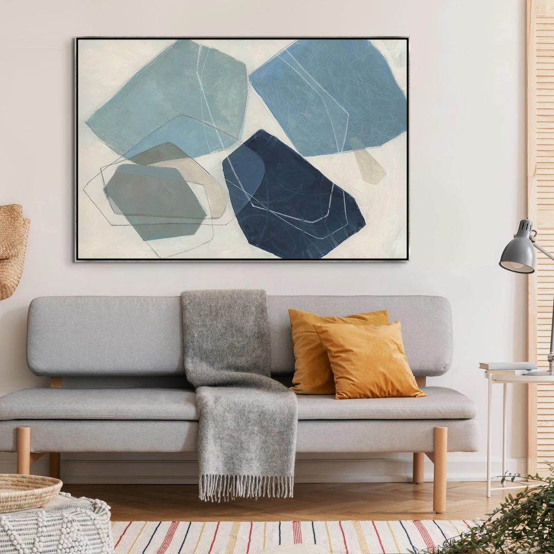“Joy Filled Shapes” abstract artwork by Richard Ryder is printed on canvas with strokes of texture that follow the image to enhance the authentic feel of the piece. This gallery-wrapped giclee is hand stretched over 1.5″ stretcher bar with your choice of optional frame finishes.