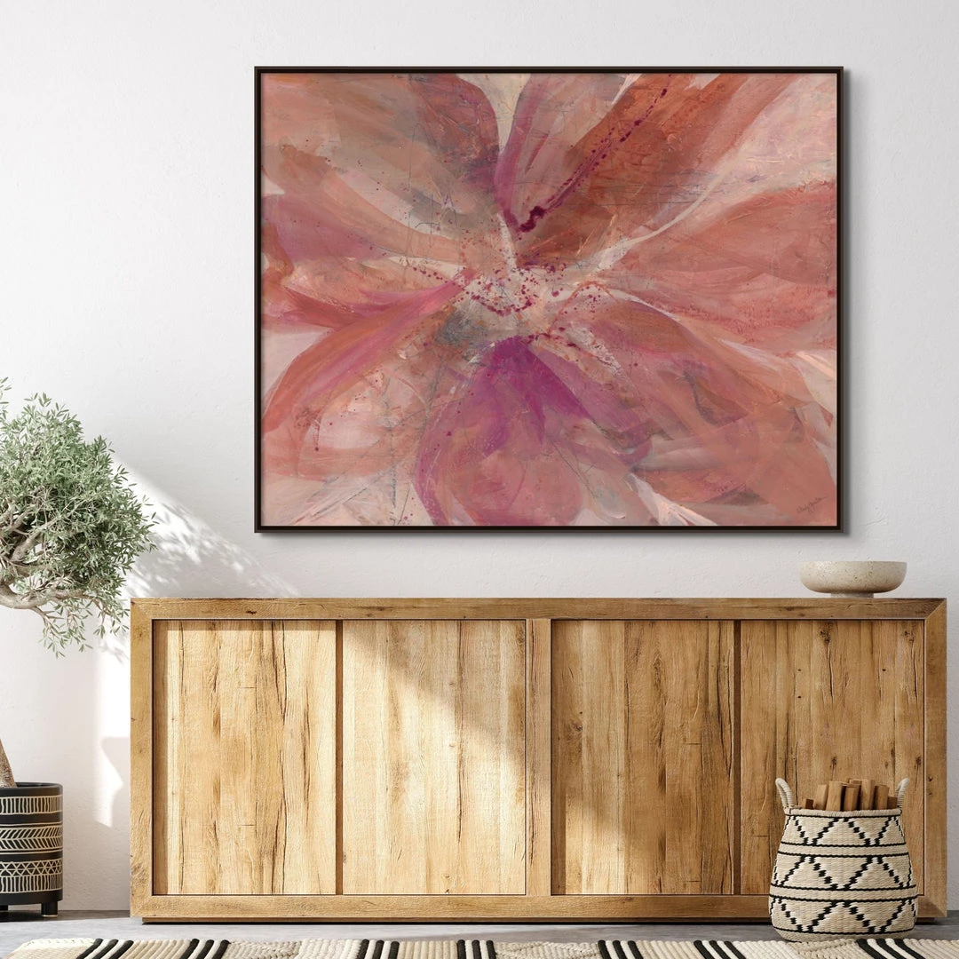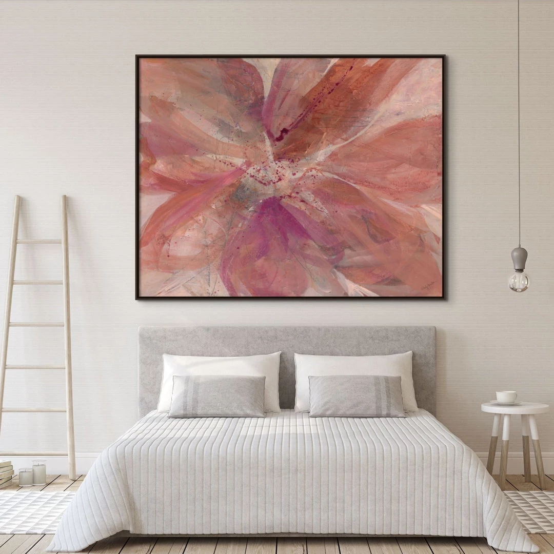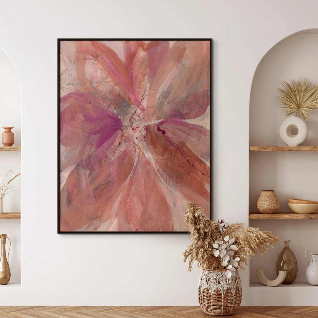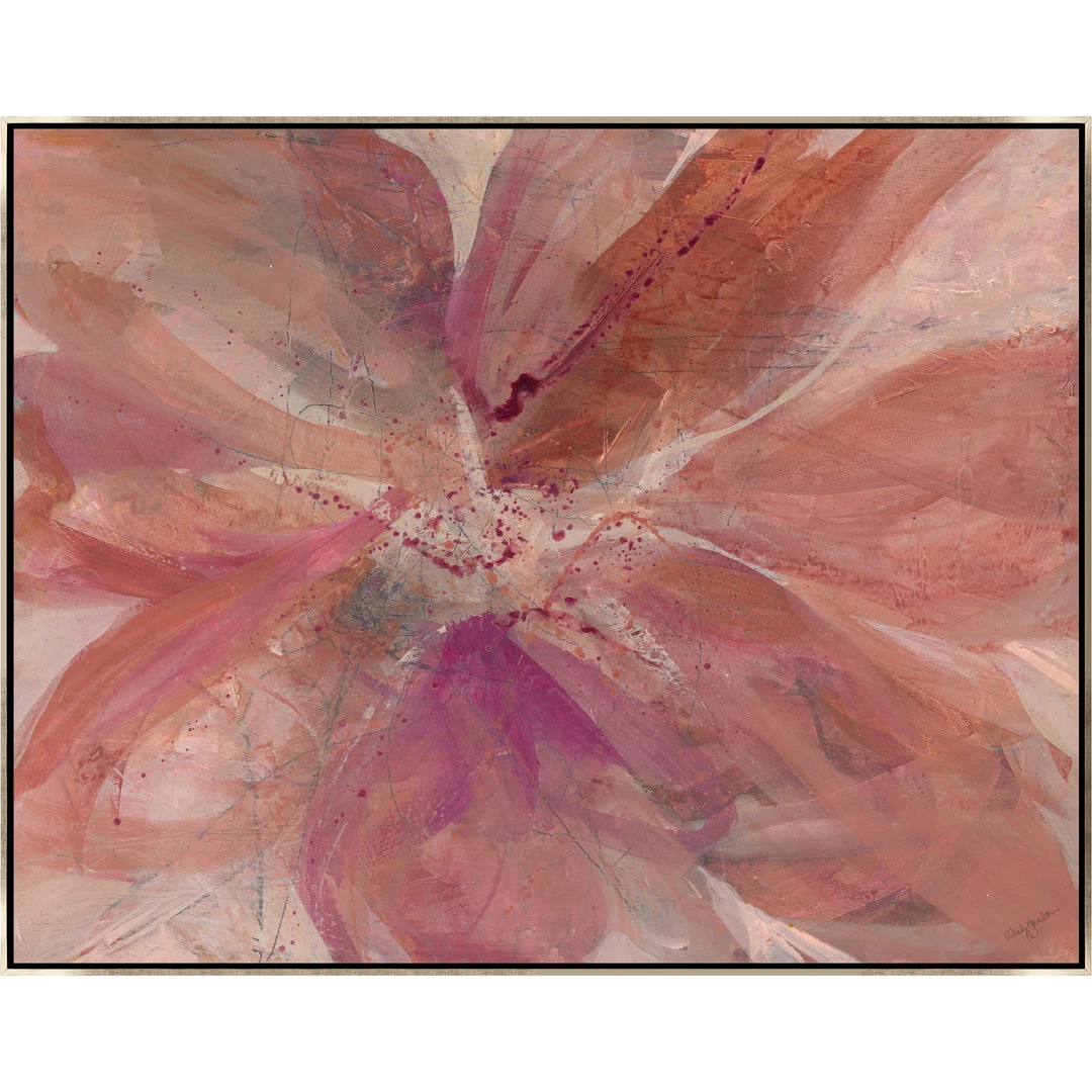 “Love me, love me not…” abstract floral artwork by Wendy Hamilton is printed on linen for natural texture. This gallery-wrapped giclee is hand stretched over 1.5″ stretcher bar with your choice of optional frame finishes.