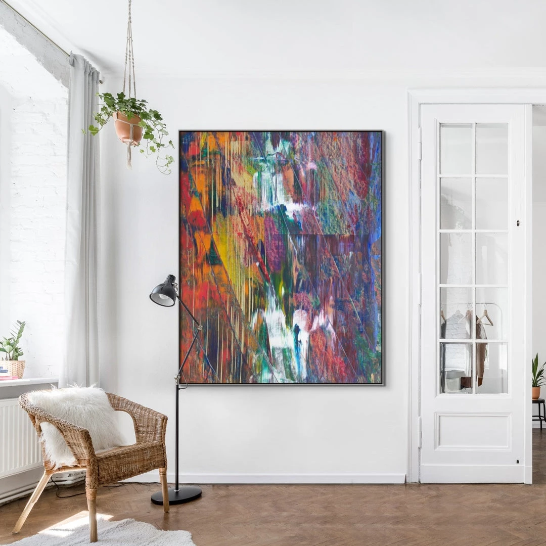 “Matthew Playful Abstract” abstract artwork by Elle Youngstrom is a giclee print on canvas with an encaustic gel finish applied vertically incorporating a unique blend of wax and a heating method that renders a versatile and unique piece of artwork. This gallery-wrapped giclee is hand stretched over 1.5″ stretcher bar with your choice of optional frame finishes.