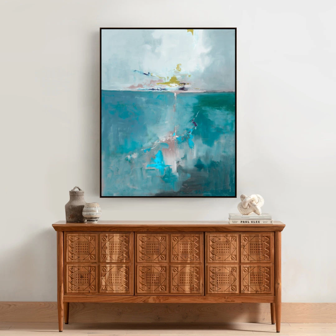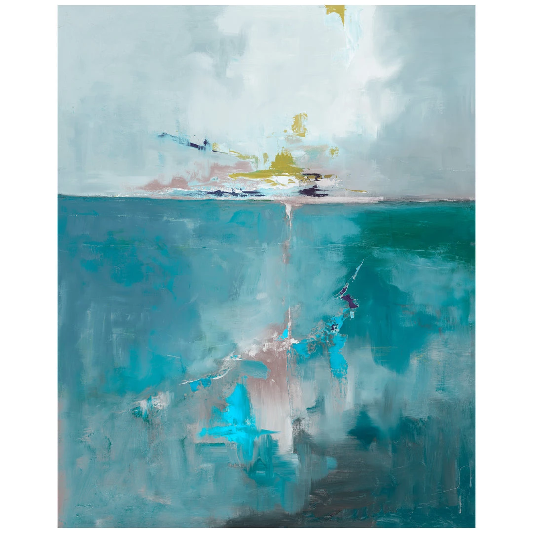 “Ocean Light” artwork by James W Pratt is printed on canvas then using a pallet knife, our artisans hand apply a gel finish texture mimicking that of an original piece of artwork. This gallery-wrapped giclee is hand stretched over 1.5″ stretcher bar with your choice of optional frame finishes.