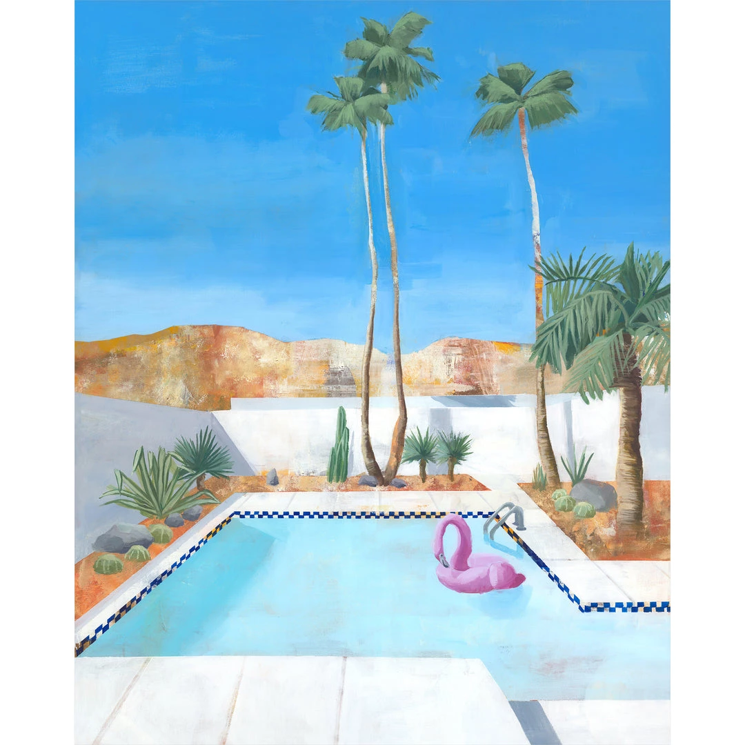 “Palm Springs” retro 1950’s desert oasis house artwork by Fern Cassidy is printed on canvas with strokes of the original image applied with an artist brush to enhance the authentic feel of the piece. This gallery-wrapped giclee is hand stretched over 1.5″ stretcher bar with your choice of optional frame finishes.