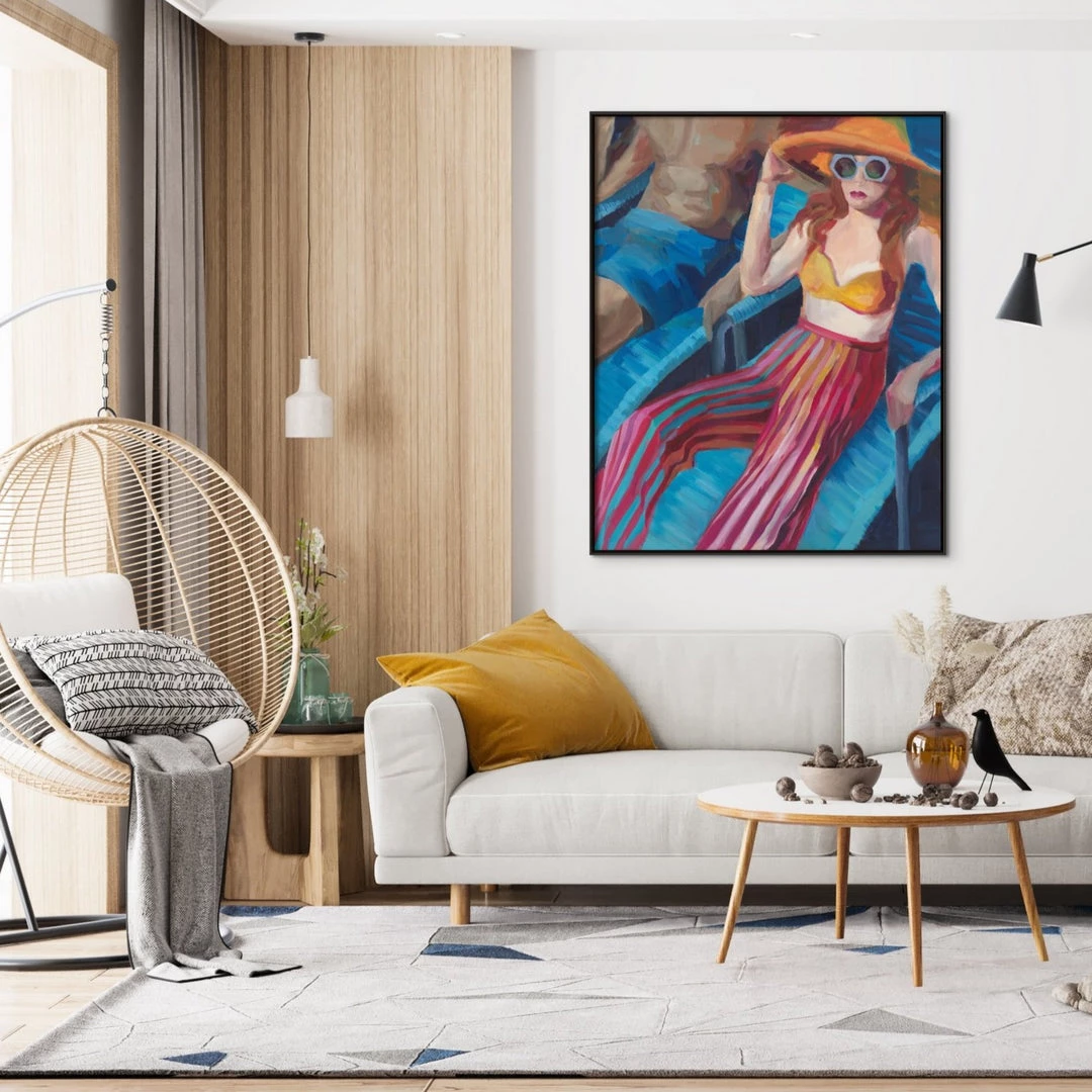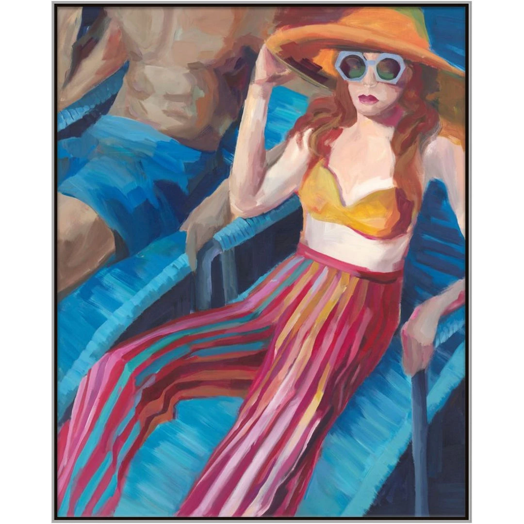 The “Pool Party” figurative artwork by Fern Cassidy is printed on canvas with strokes of the original image applied with an artist brush to enhance the authentic feel of the piece. This gallery-wrapped giclee is hand stretched over 1.5″ stretcher bar with your choice of optional frame finishes.