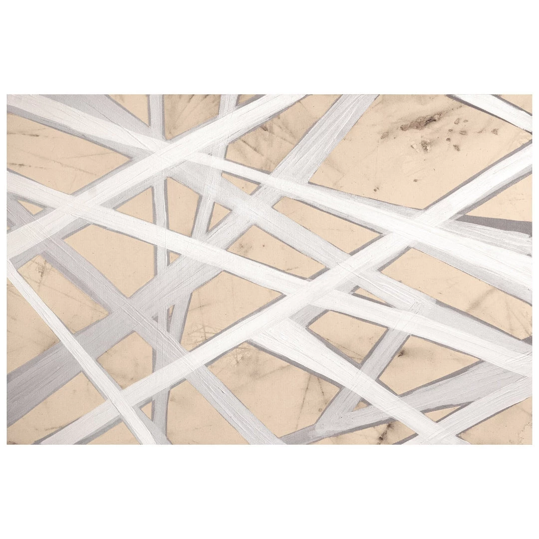 L ART “SILVER PATHS I” NATURAL CANVAS HAND PAINTING Wall Art