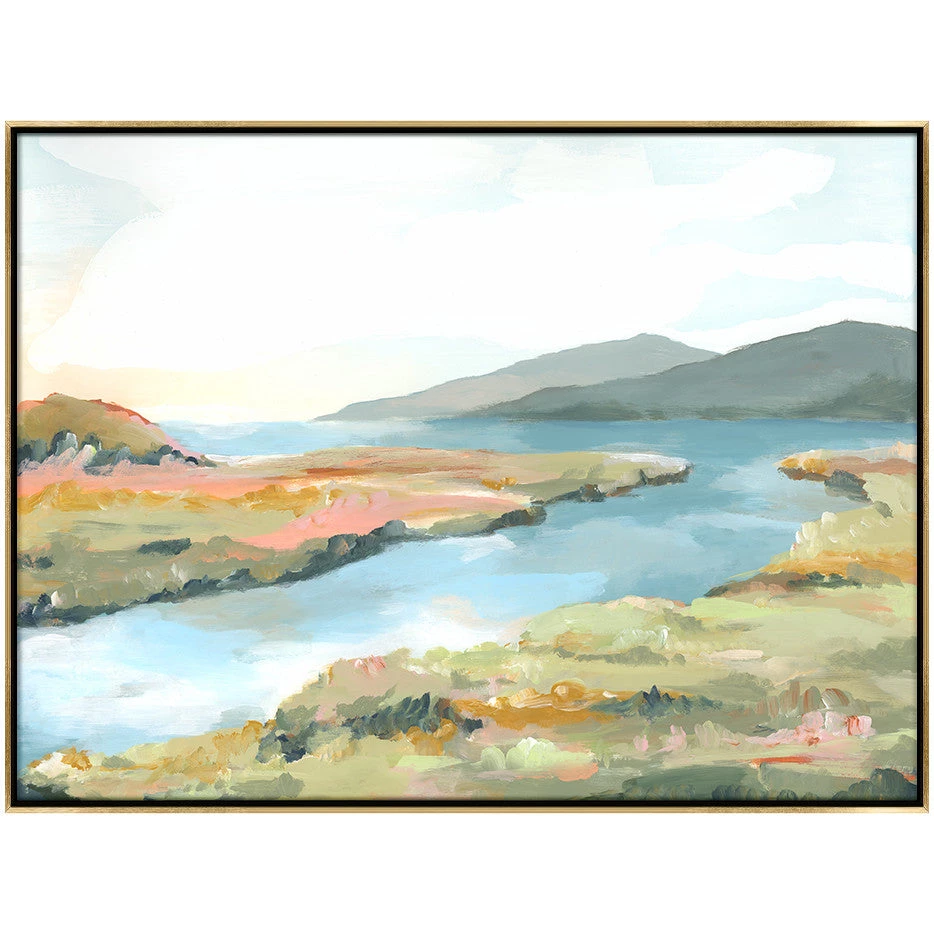 “Under Blue Skies” landscape artwork by Bella Lane is printed on canvas with strokes of the original image applied with an artist brush to enhance the authentic feel of the piece. This gallery-wrapped giclee is hand stretched over 1.5″ stretcher bar with your choice of optional frame finishes.