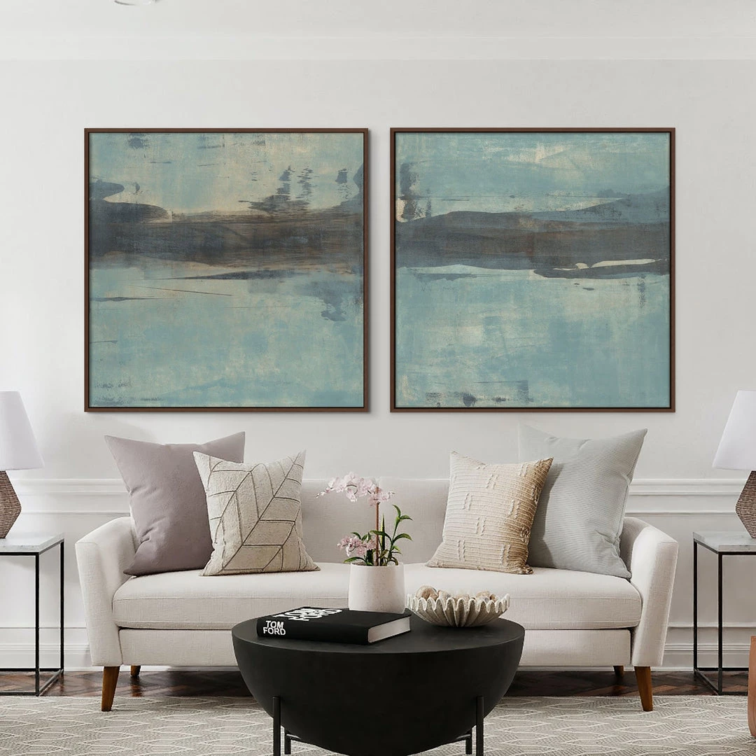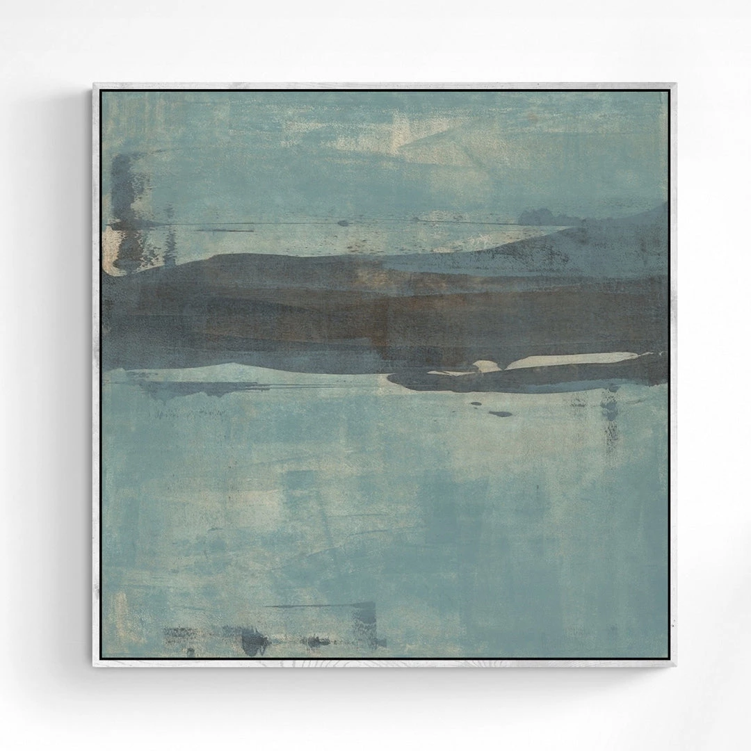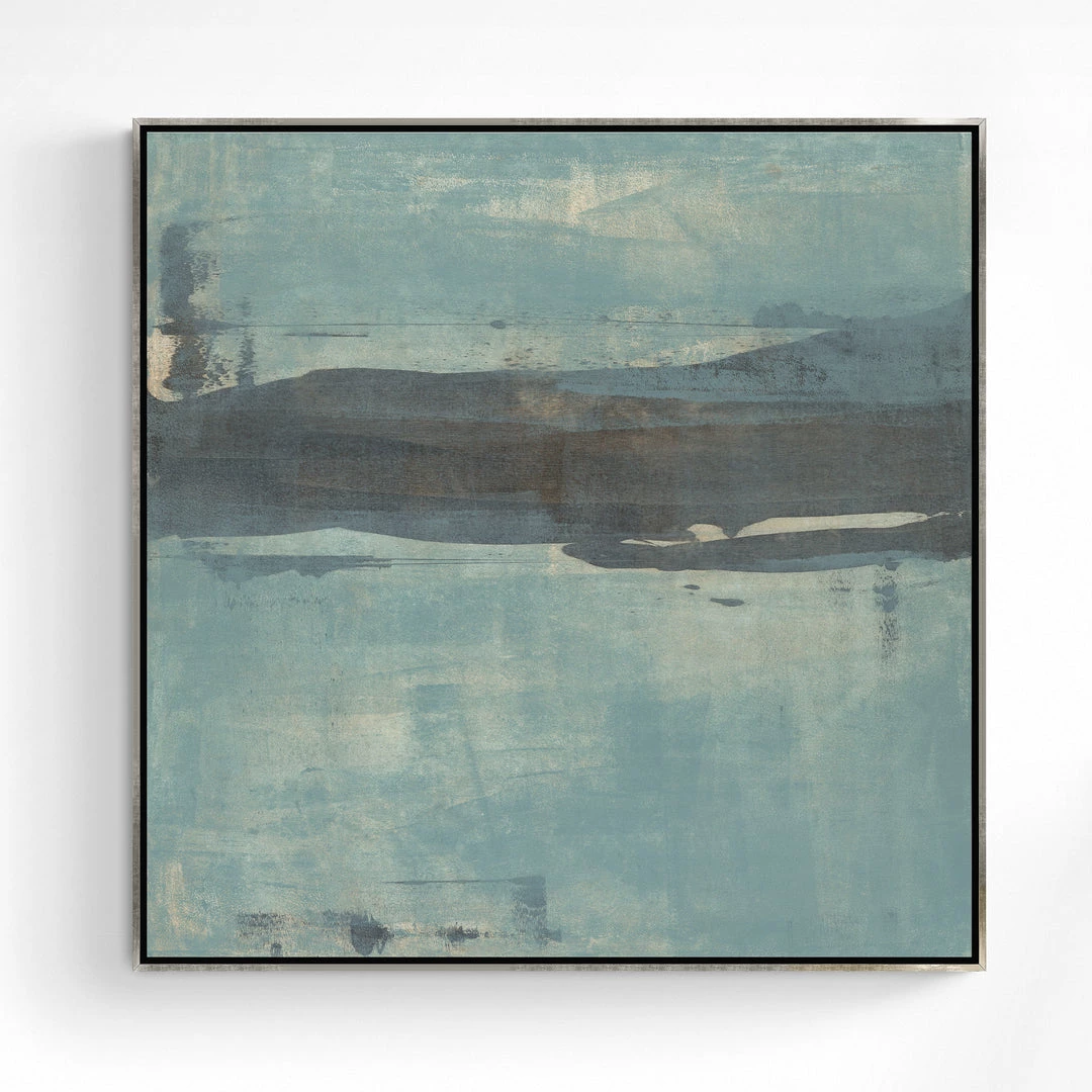 “Verdant Ephemera” ocean blue abstract artwork by David Erickson is printed on unprimed, exposed canvas giving an organic feel to the piece. This gallery-wrapped giclee is hand stretched over 1.5″ stretcher bar with your choice of optional frame finishes.