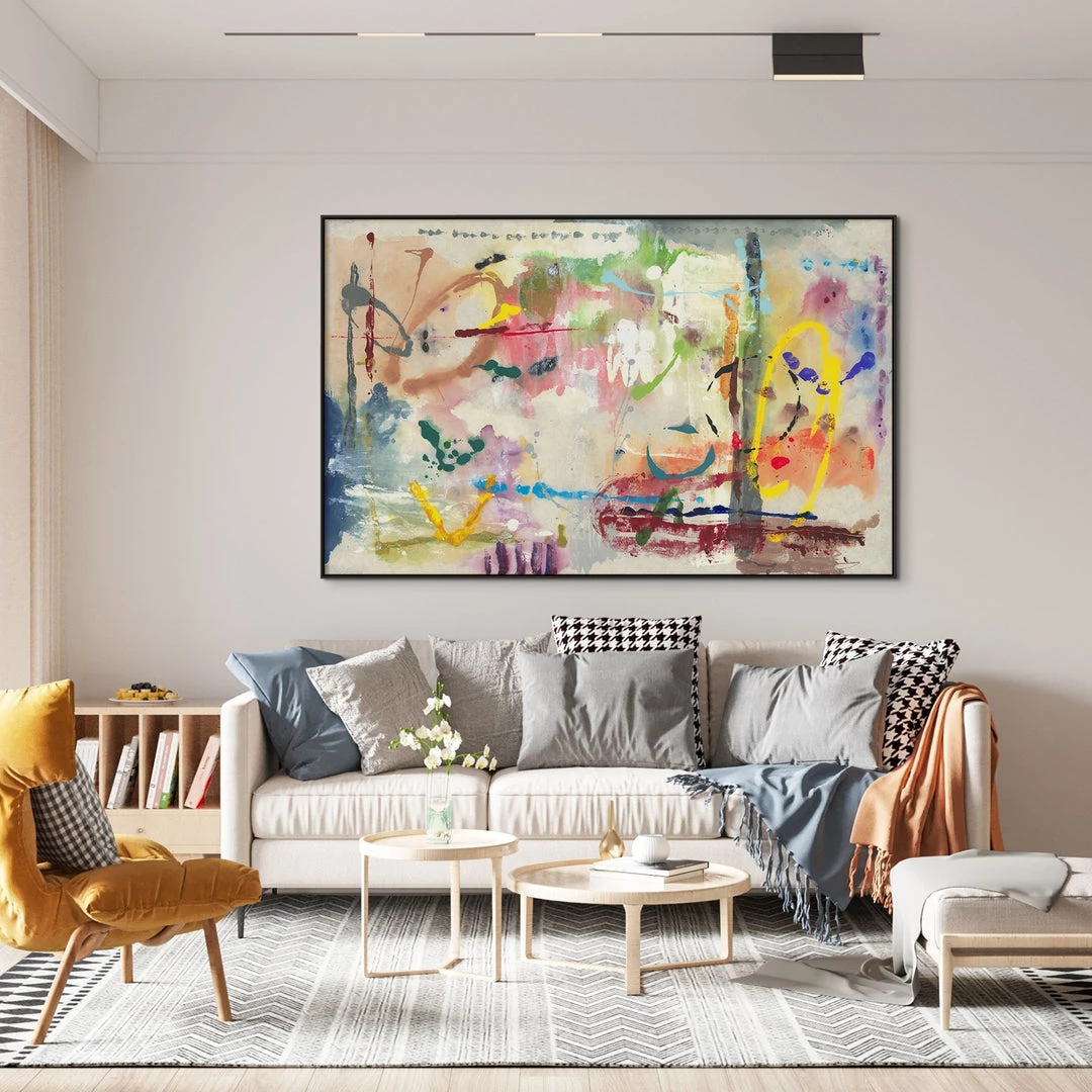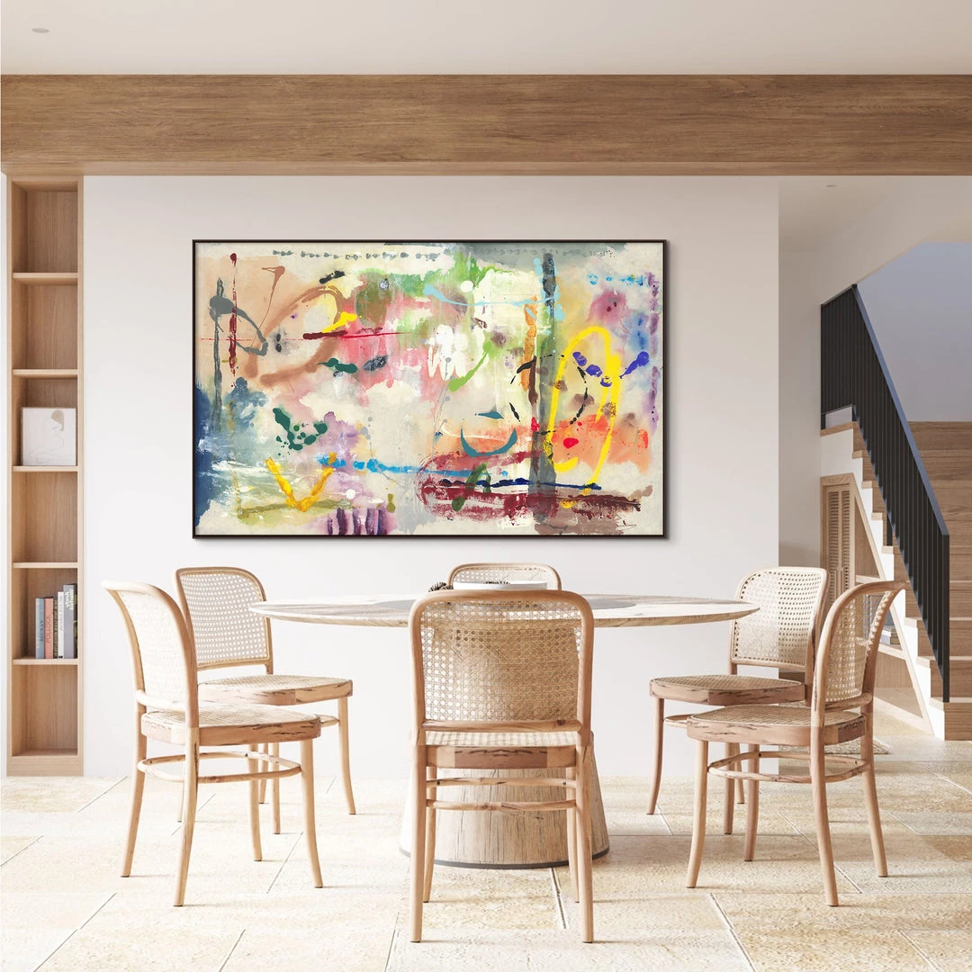 “Dream Candy” abstract artwork by Jean Kenna is printed on canvas with strokes of texture that follow the image to enhance the authentic feel of the piece. This gallery-wrapped giclee is hand stretched over 1.5″ stretcher bar with your choice of optional frame finishes.